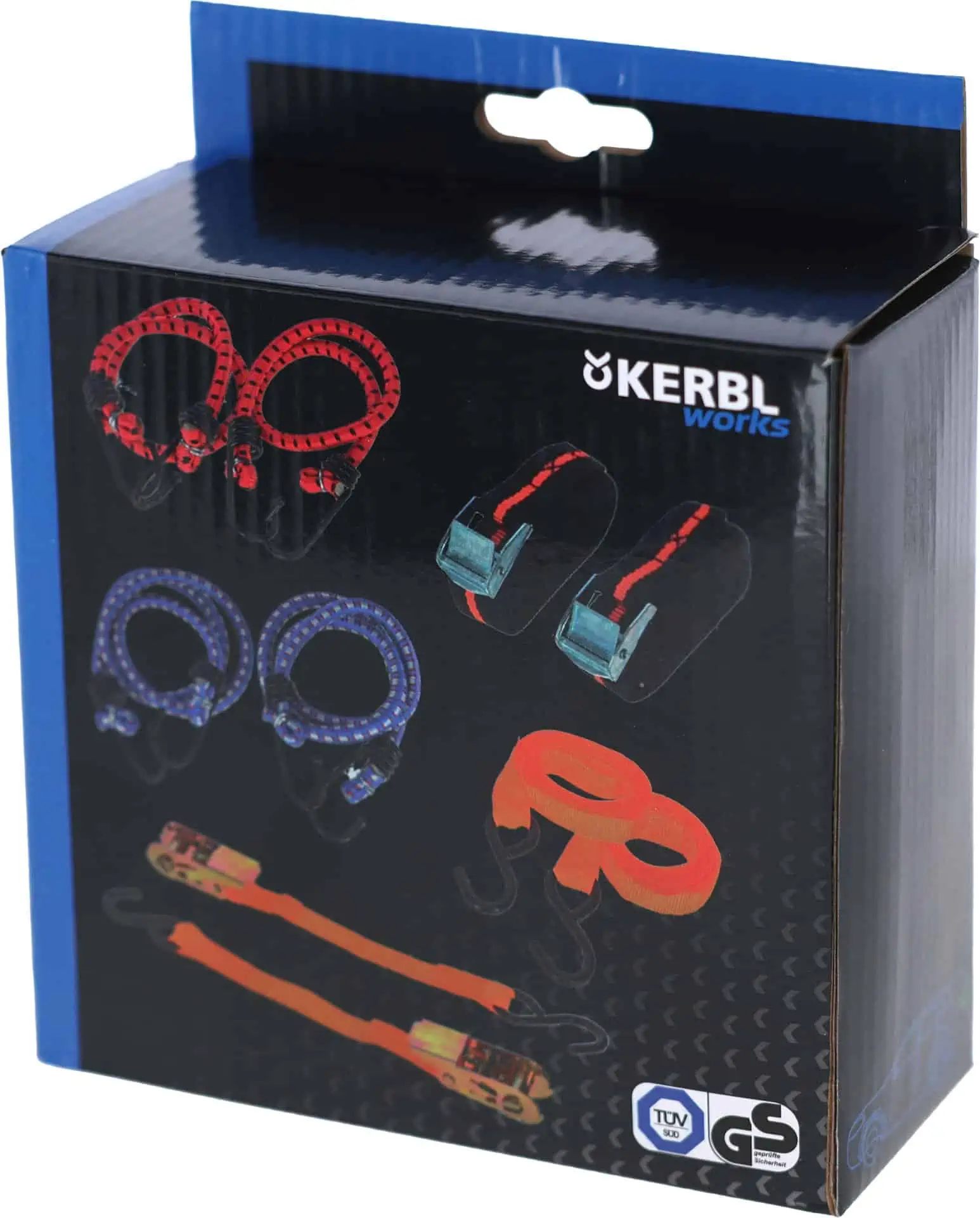 Setul conține diferite tipuri de bretele și expandri: 4 Expander și 4 curele de șchiopătare în diferite versiuni cu cârlige de blocare, clichet și S. Această selecție largă permite asigurarea profesională aproape orice fel de sarcină, indiferent de formă și dimensiune.