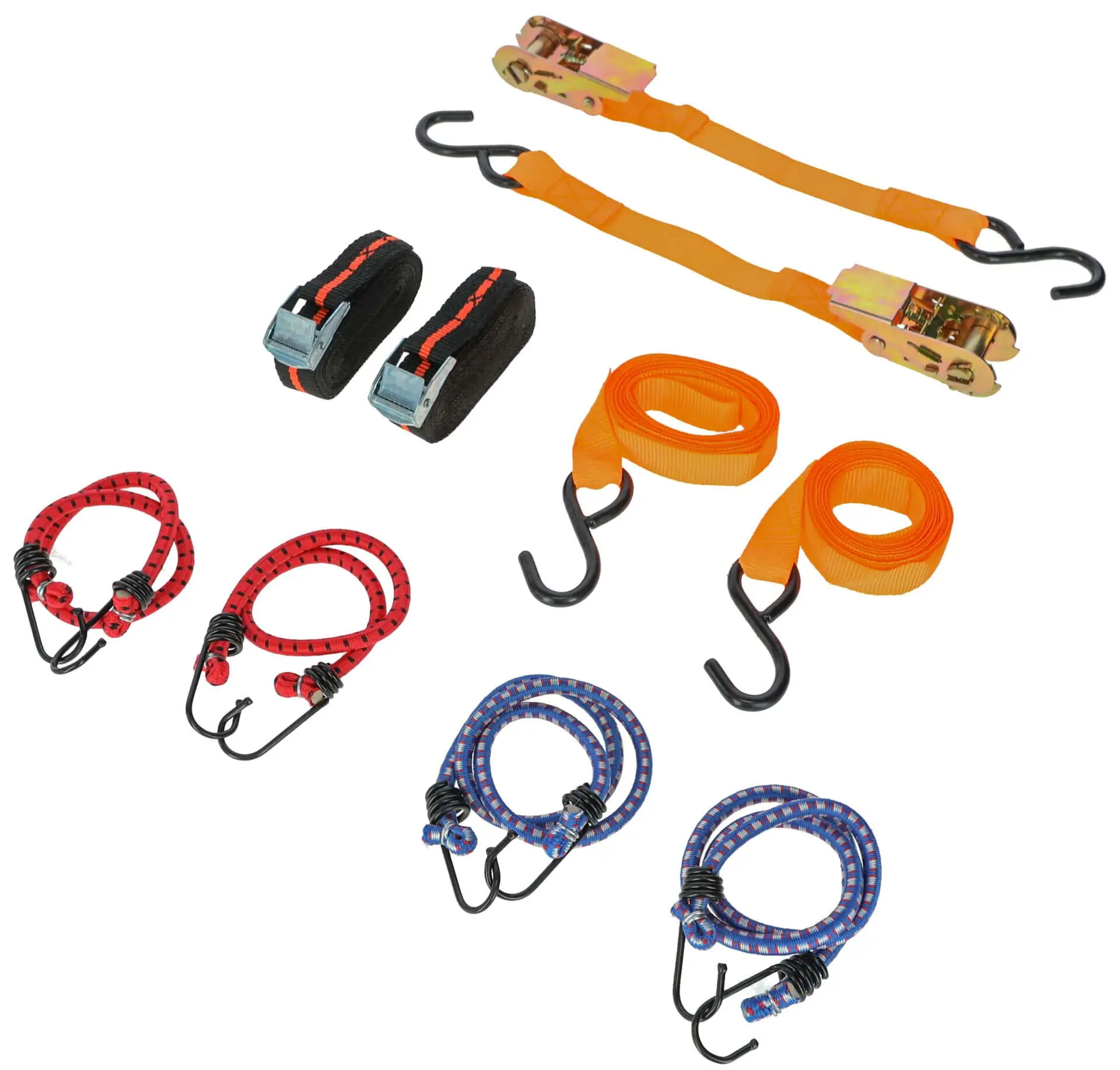 Setul de curea de șchiopătare este versatil, de exemplu pentru îndepărtări sau pentru a asigura încărcări pe mașini, remorci, biciclete, camioane și autoutilitare.