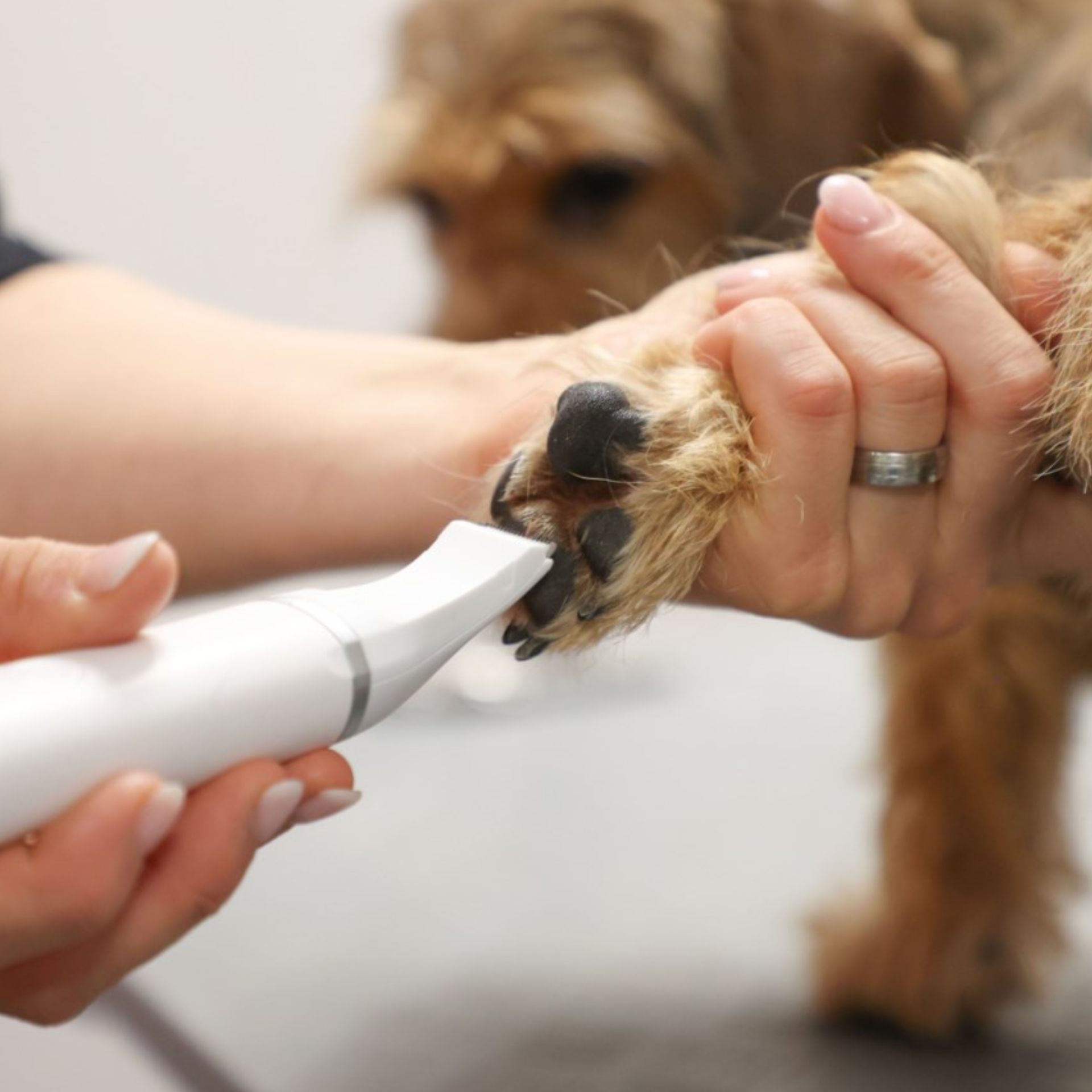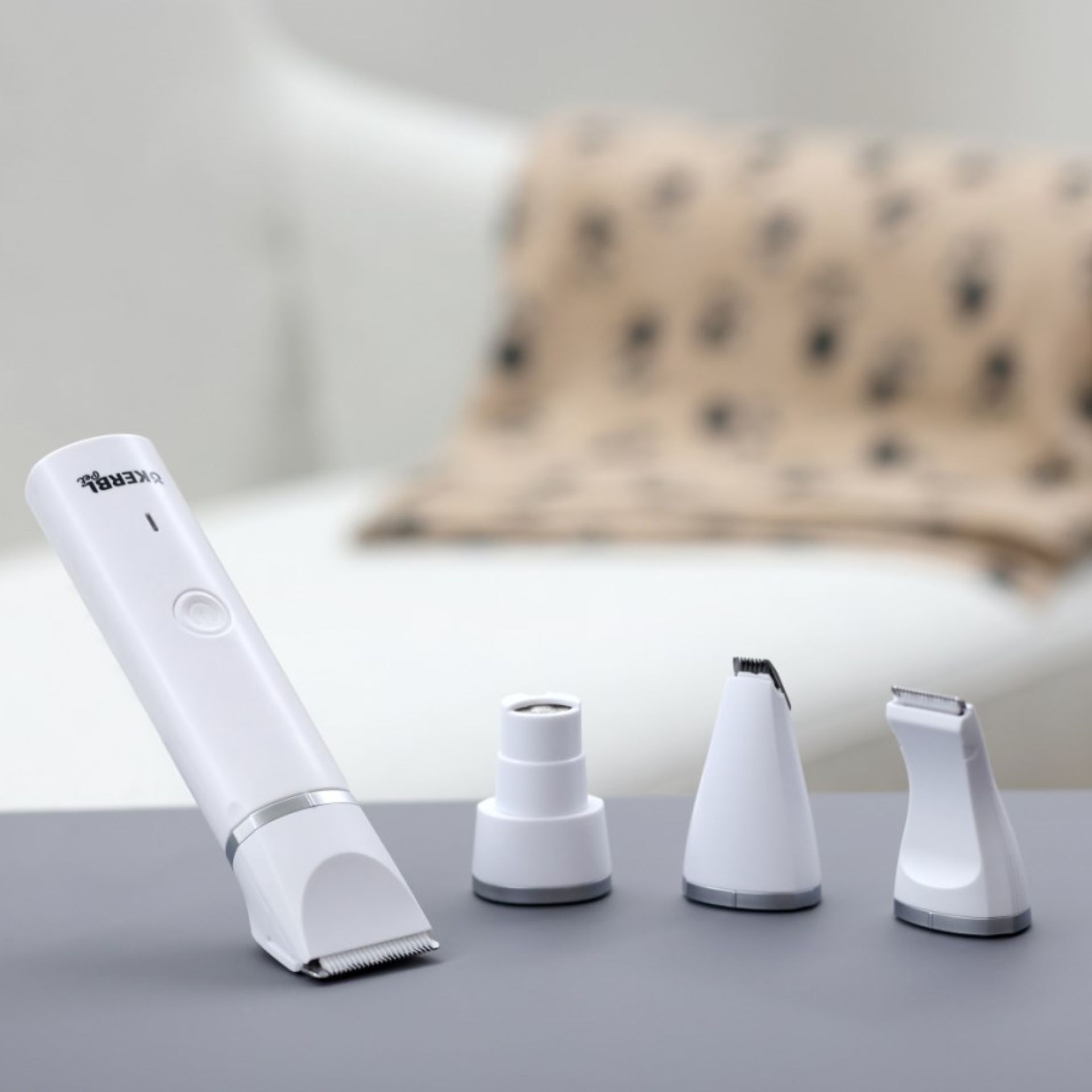 - incl. Cap de forfecare pentru suprafețe mari, cap de bărbierit pentru forfecare detaliată, cap de bărbierit pentru forfecare mică și piatră de șlefuit pentru îngrijirea ghearelor