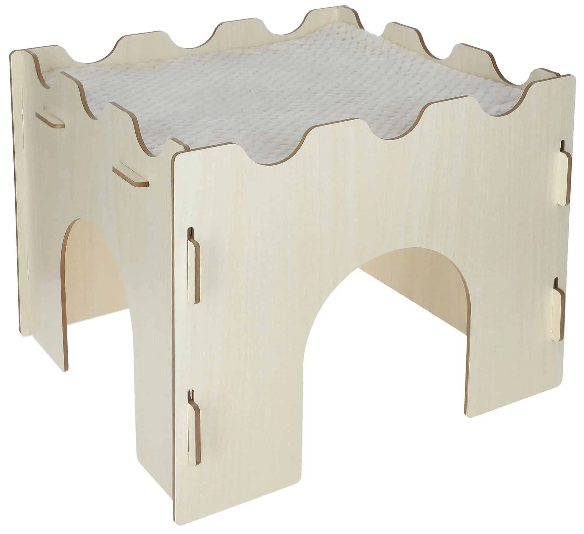 Katzenburg are două deschideri laterale care permit accesul ușor al pisicii. Este confecționat din placaj cu o acoperire cu furnir care poate fi curățată cu ușurință. Perna detașabilă de pe suprafața mincinoasă asigură un confort suplimentar și se poate spăla manual. În plus, castelul Cat este ușor de asamblat, deoarece este livrat într -o stare dezasamblată și necesită doar un ansamblu simplu de plug -in.