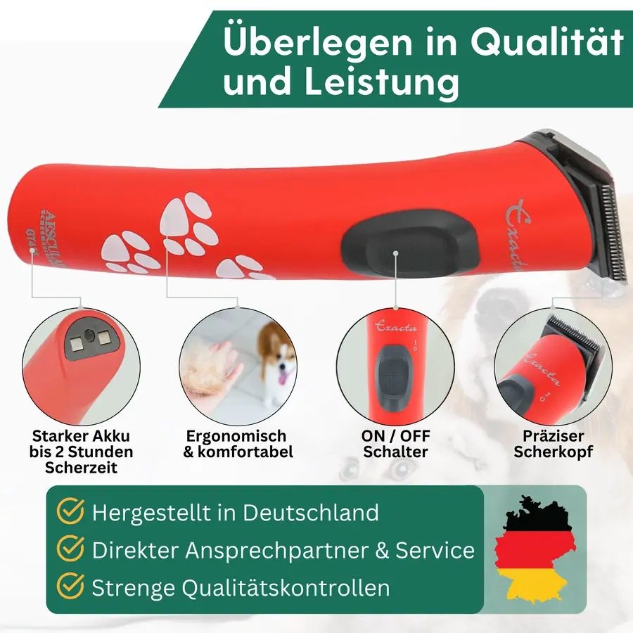 Aesculap Mașină de tuns cu acumulator roșie cu cap de tăiere de rezervă – Îngrijire precisă pentru animalul tău de companie