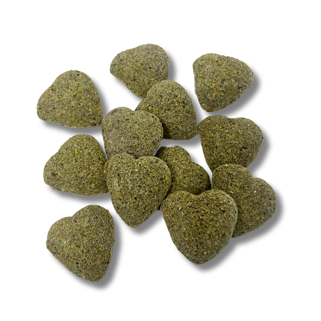 Emma's Horse Treat Apple Hearts are the perfect reward for your horse. These delicious snacks are 100% natural, contain no artificial colors or preservatives, and have no flavor enhancers. They are made in a small mill in Germany and impress with their intense flavor and extremely high acceptance by horses. It is especially noteworthy that the treats are completely free of chemicals, making them a healthy and natural reward. The handy treats, approximately 3 x 1 cm in size, are ideal for horse owners who value natural and high-quality products.