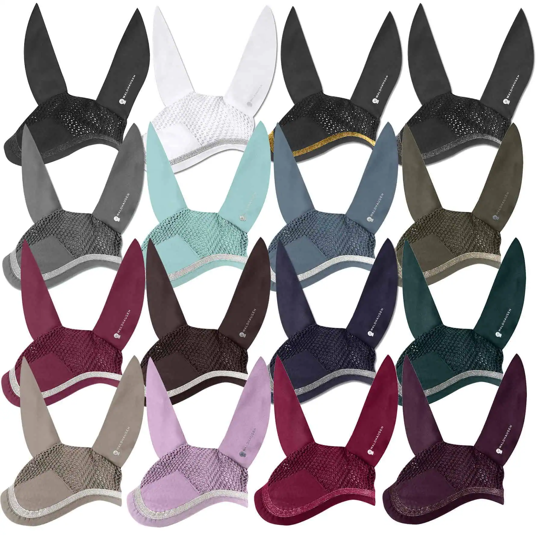 Classy fly veil set with a glittering piping, perfect complement to our "Competition" saddle pad. Made in smooth cotton blend material, crocheted front part.