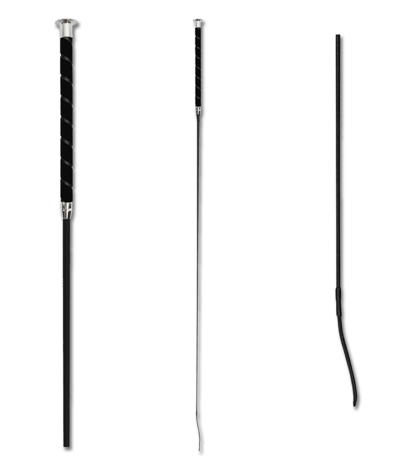 Dressage whip with non-slip, contrasting black velour, velvety handle.