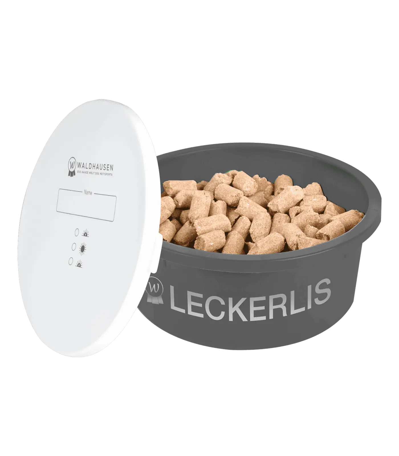 High-quality and sturdy bowl with lid for your horse’s treats. Protects from mice. Of course, can also be used for other products.
