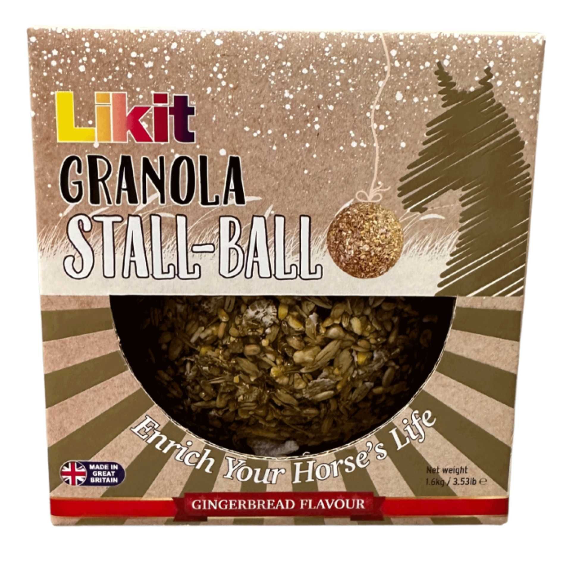 Îmbogățiți viața calului dumneavoastră cu LIKIT Sfere cu musli 1,6 kg, gingerbread, pline de cereale gustoase (ovăz, orz, porumb și cereale integrale). Sfera cu musli este concepută pentru a fi agățată liber în grajd, prevenind stresul și plictiseala.