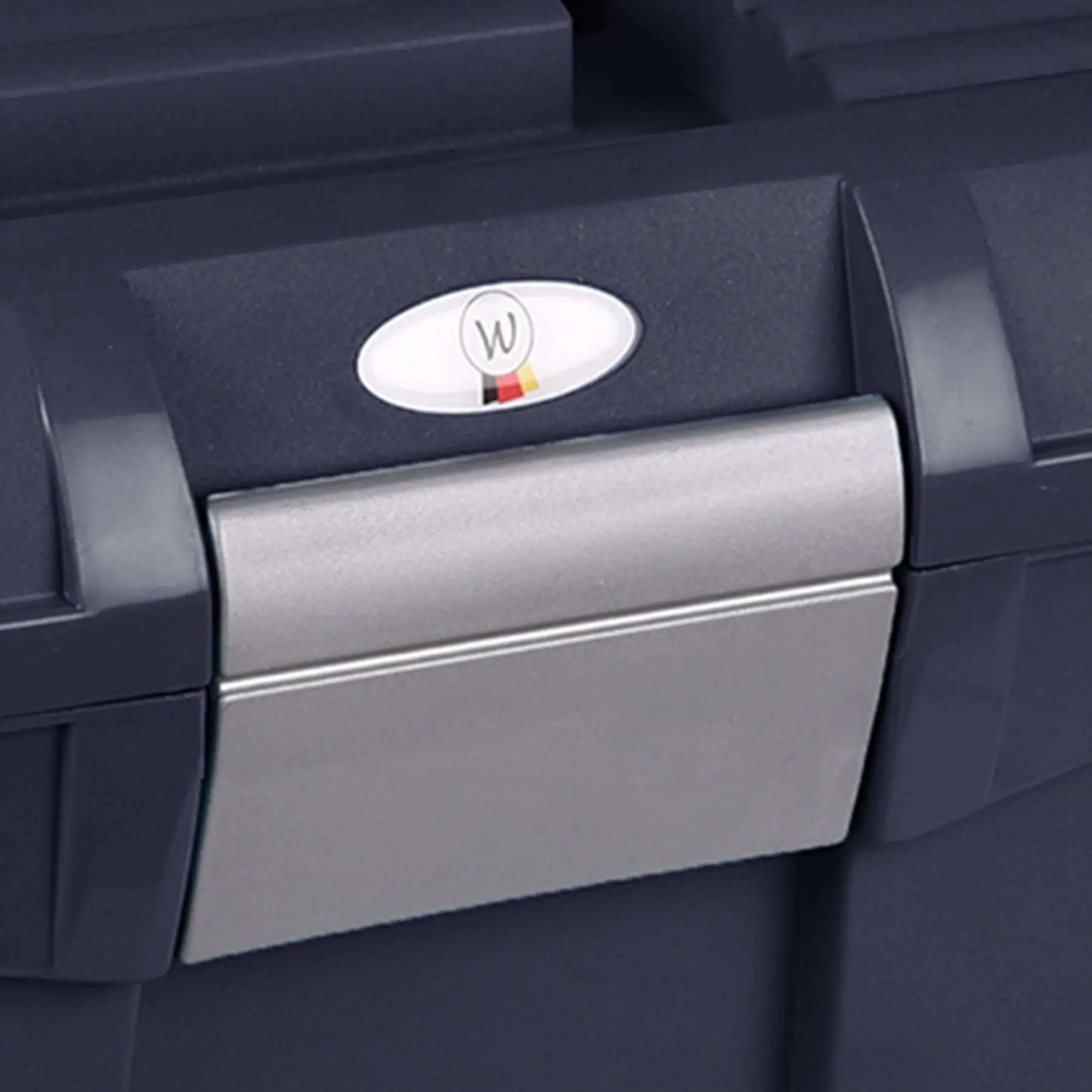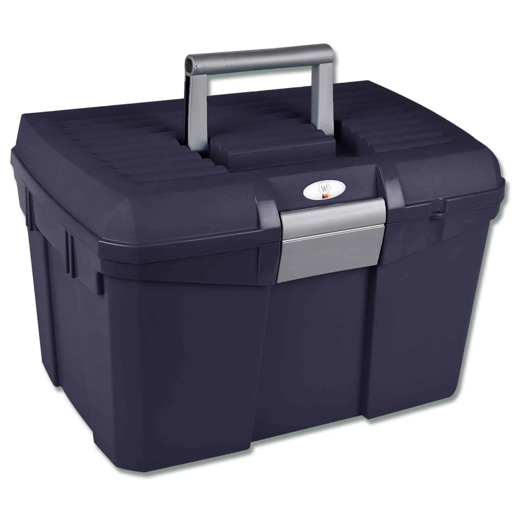 Grooming kit box in sturdy plastic. The removable tray for small items ensures tidiness as does a removable brush holder inside the box.