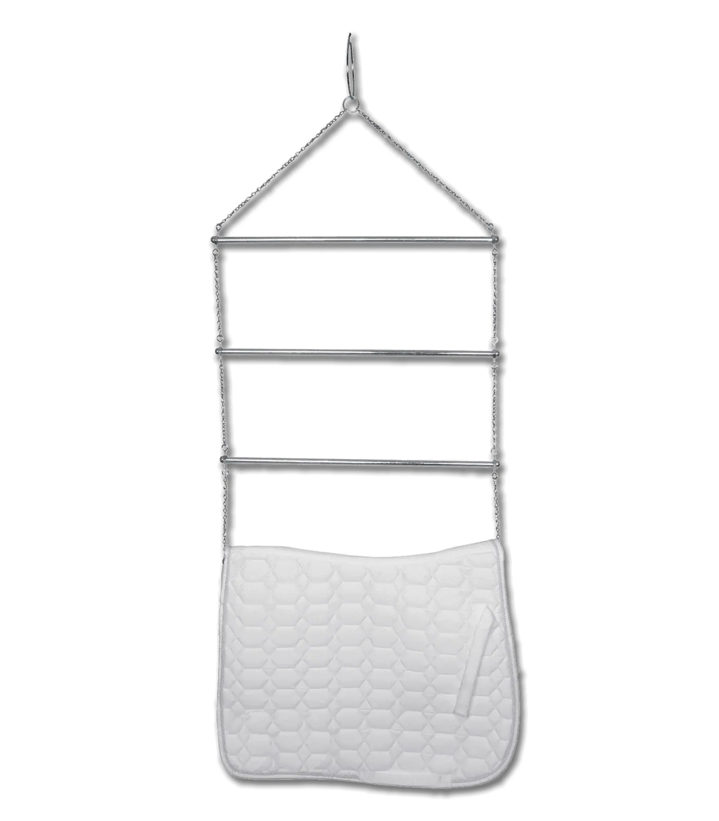 Space saving rack to store rugs properly, to keep them clean, dry and neat. With 4 bars and a ring for convenient hanging.