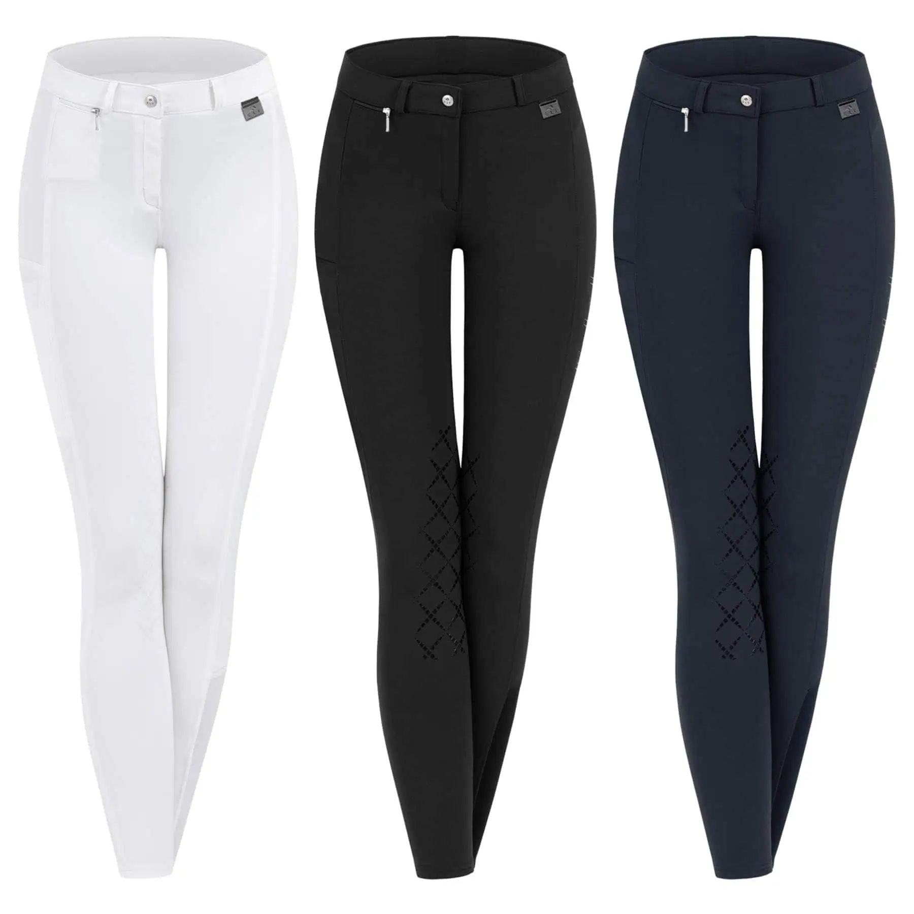 Un pereche de ELT Pantaloni călărie micro silicon genunchi.
