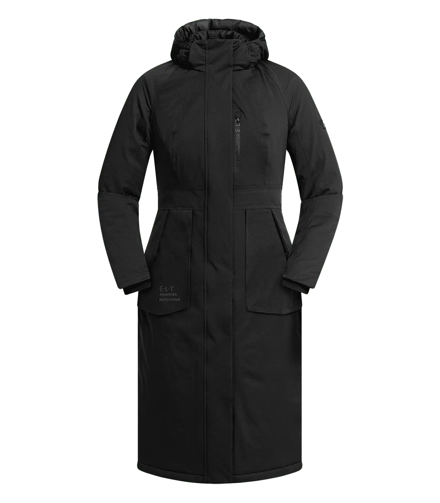 - Two large, patch flap pockets with press stud fastener and hand-warming fleece lining. Right pocket with - E·L·T Equestrian Performance lettering.