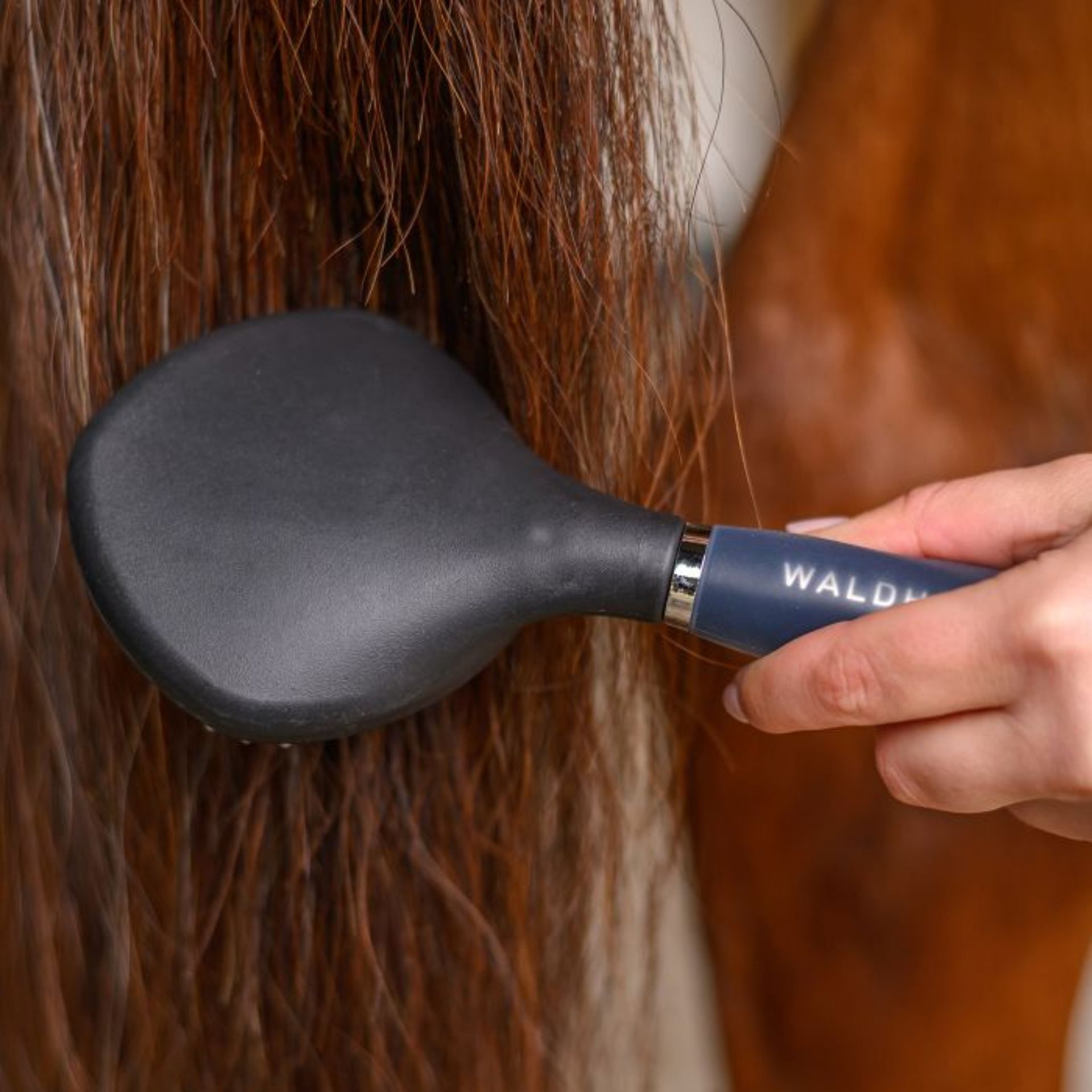 Waldhausen Perie cu păr lung și mâner din gel este o perie elegantă, concepută pentru îngrijirea blândă a coamei, cu ace din plastic rotunjite. Mânerul din gel se mulează ergonomic pe palma mâinii dvs., asigurând o utilizare confortabilă.