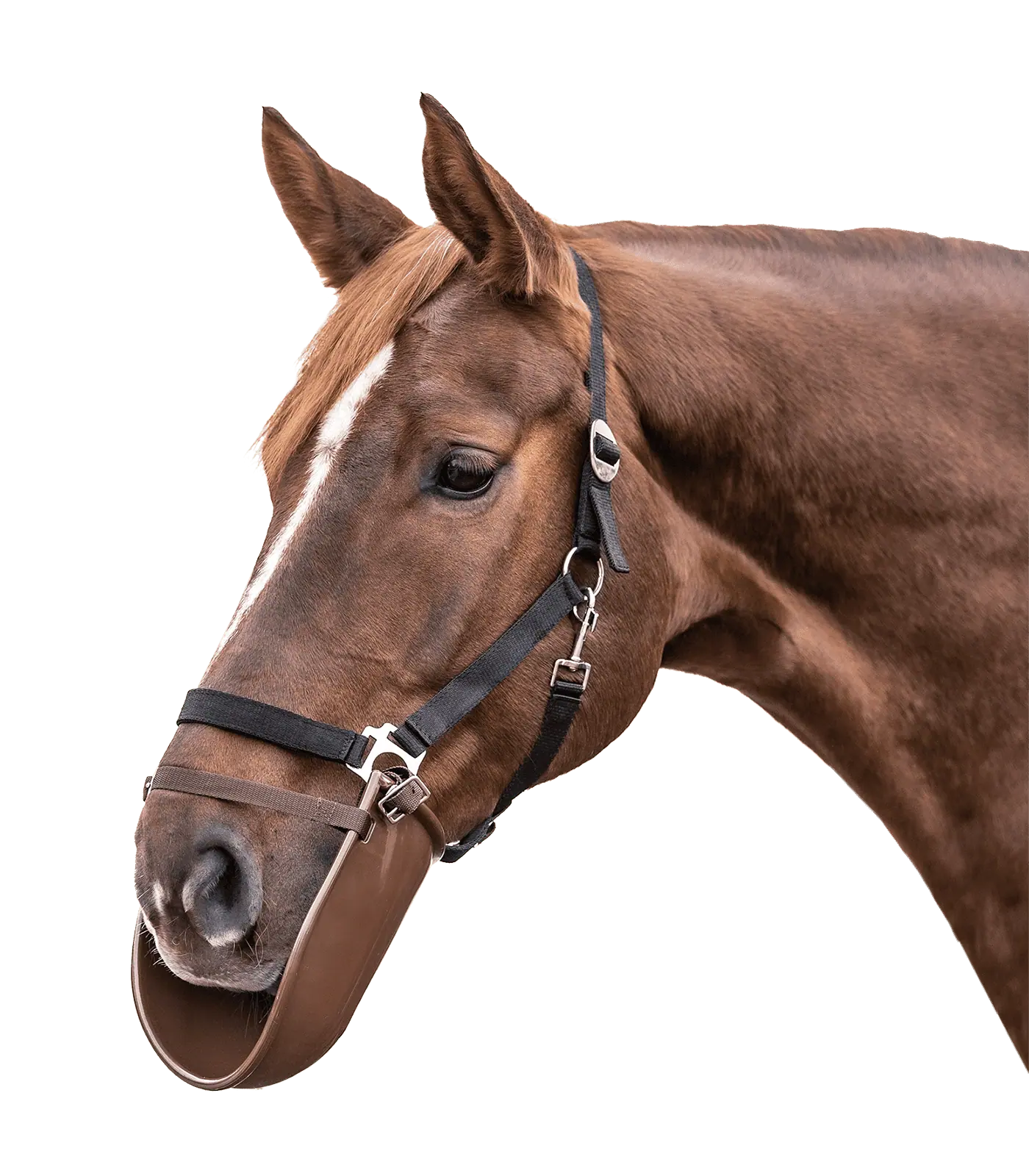 Strong plastic, buckles to head collar. Hygienic, easy to clean.