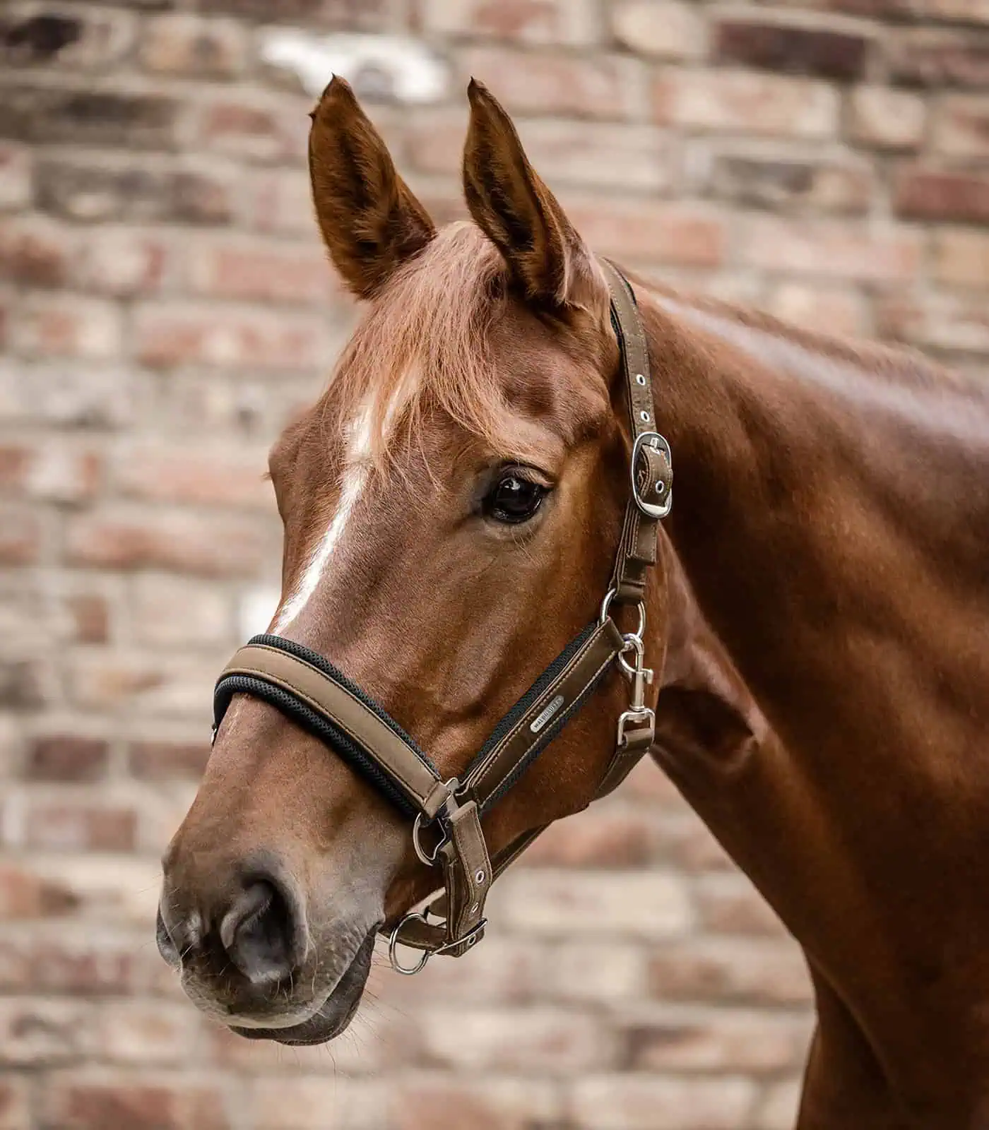 Quality halter, with an elegant satin covering. The halter is lined with mesh and so provides a high degree of wearer comfort. Headpiece adjustable on both sides, as well as being adjustable in chin area on one side.