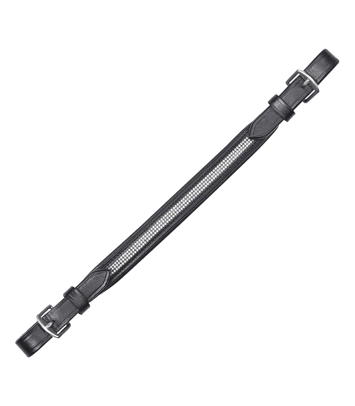 Hard-wearing leather, softly padded. Simply buckle onto the rings on the saddle. Inlaid with rhinestones.