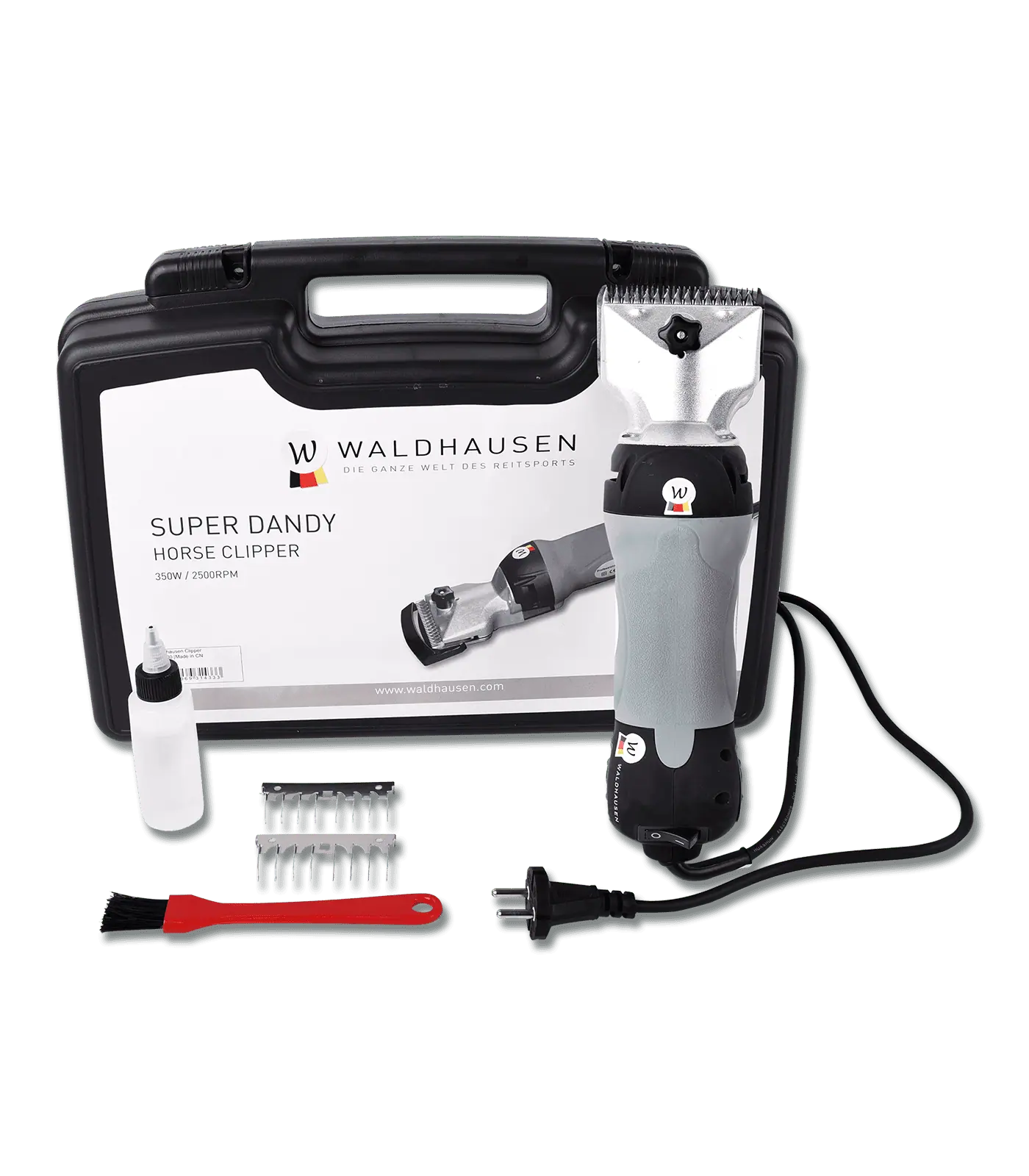 Waldhausen Mașină de Tuns este o mașină de tuns puternică, ideală pentru tunsul cailor și al bovinelor. Datorită designului ergonomic al mânerului și greutății reduse, veți putea lucra fără oboseală. Vine într-o valiză practică, împreună cu accesoriile necesare.