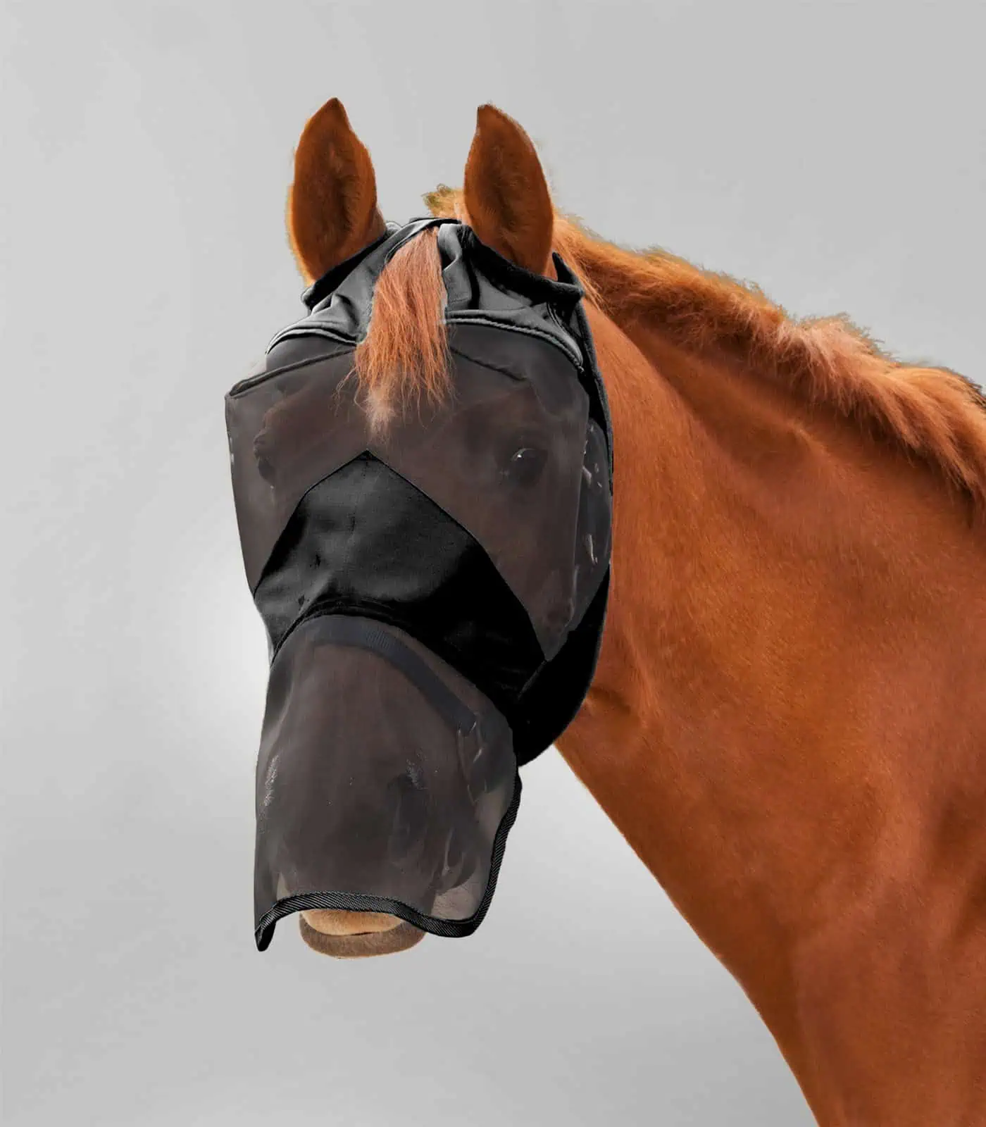 PREMIUM Fly Mask without ear and with nose protection black Pony