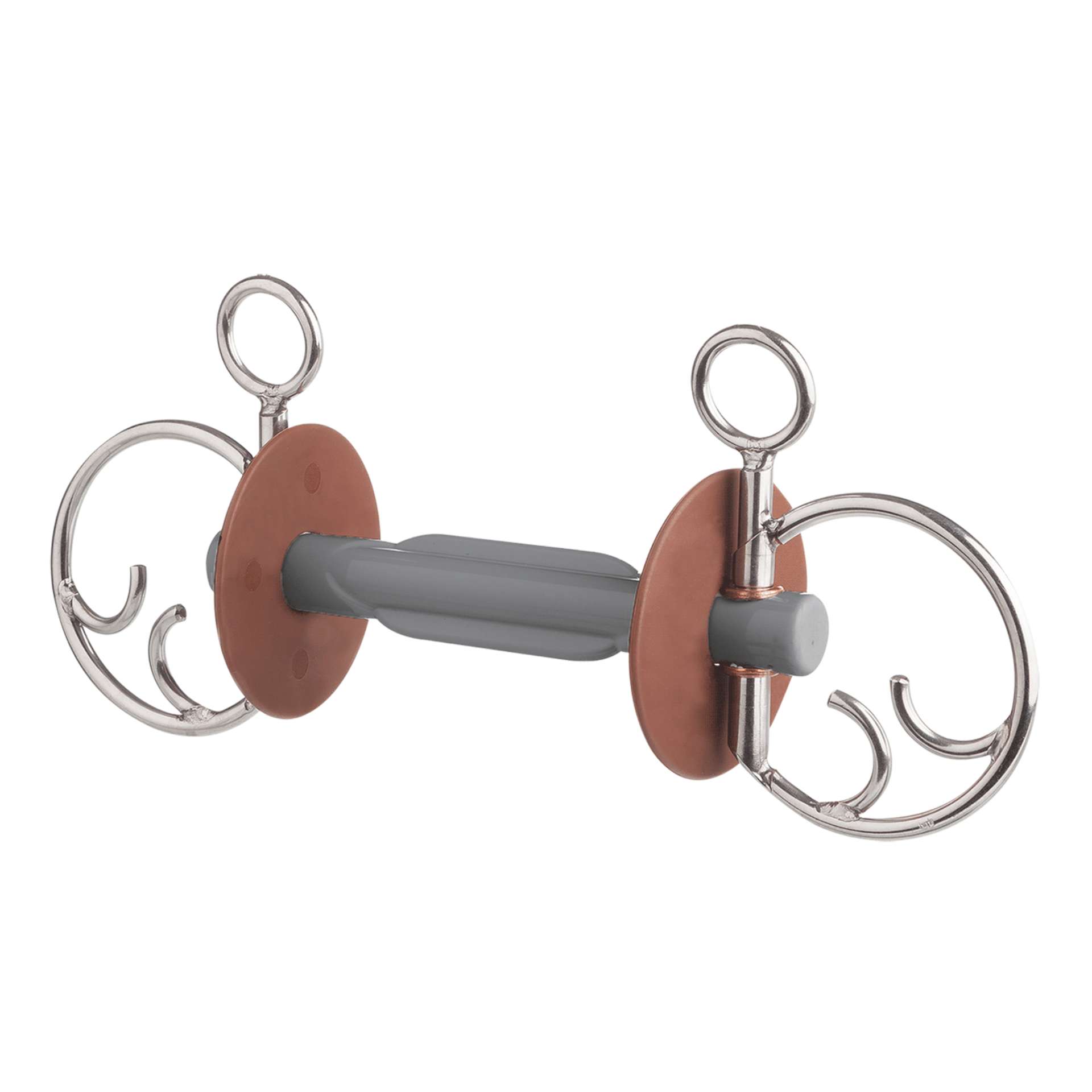 The butterfly mouthpiece represents an absolute bitting innovation. The anatomically correct shape combined with the broader contact area with the tongue creates the maximum amount of space for this extremely important and sensitive muscle with the possibility of a very gentle effect. Horses show they are feeling well with increased chewing and an improved acceptance of the bit. If a stronger effect on the horse"s mouth is required, then a cheekpiece acting as a lever can achieve an alteration to the angulation of the mouthpiece in the mouth. Then, through the increased pressure on certain points, the transmission desired can be achieved. When the pressure is relaxed the butterfly bar returns immediately to its comfortable position. The Kimblewick bit is an effective combination of a lever action on the horse‘s lower jaw, poll pressure and a re-positioning of the bit inside the horse‘s mouth. Three different buckling options allow a well regulated use of the bit. The solid sidepieces of the bit give it a certain weightiness, which ensures a quieter position in the mouth.