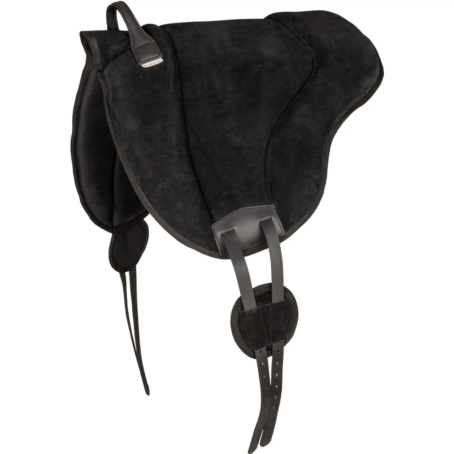 Anatomically shaped riding pad which provides a particularly good hold with its suede surface and its leather grab handle. The thick foam padding is stable under pressure and shock-absorbing whilst, at the same time, having an non-slip effect. The soft cushioning and room for the withers makes the riding pad very comfortable for the horse"s back.