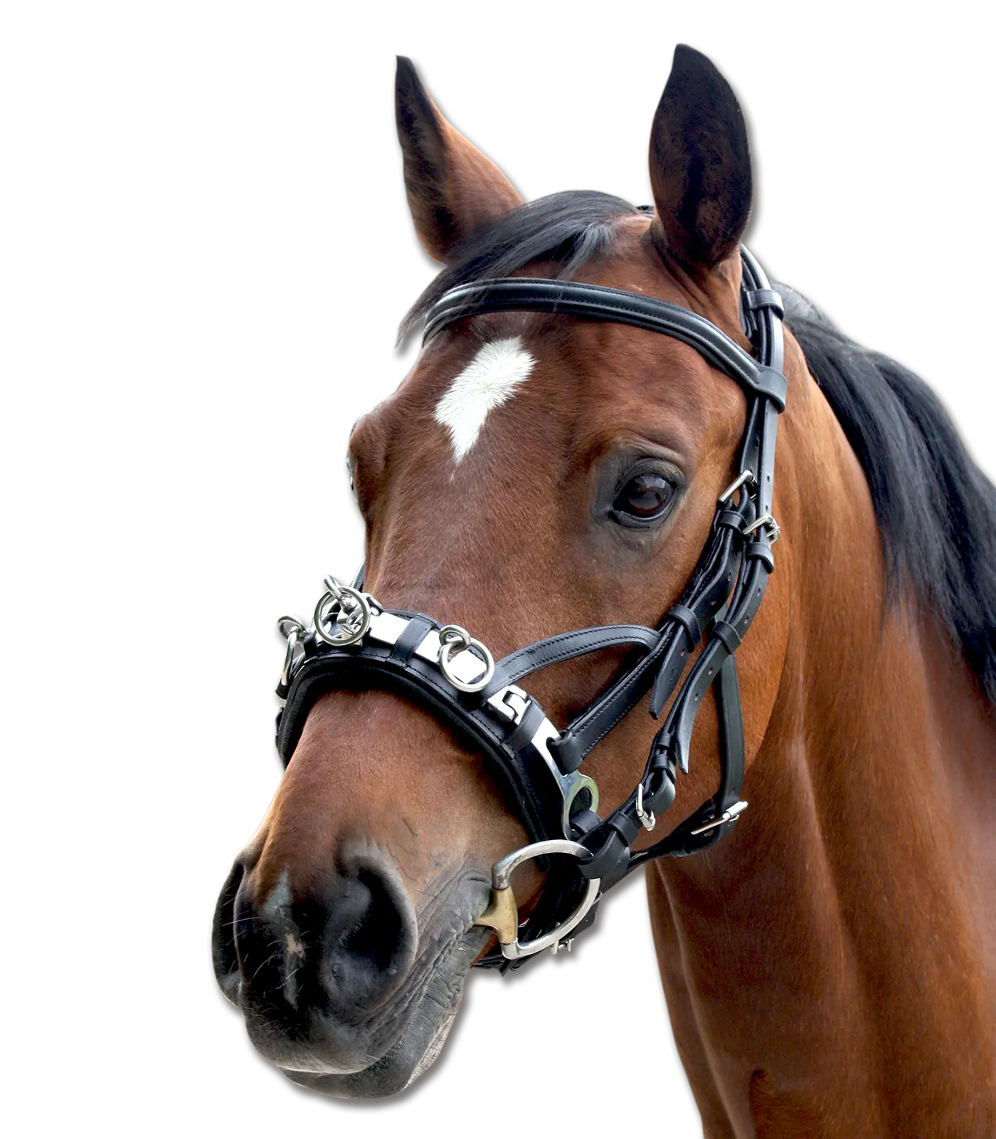 High quality leather, best workmanship and comfortable wear. Perfect attachment possibilties. Can be used with or without a bit. Padded to protect the sensitive bridge. Stainless steel fittings. Bit not included.
