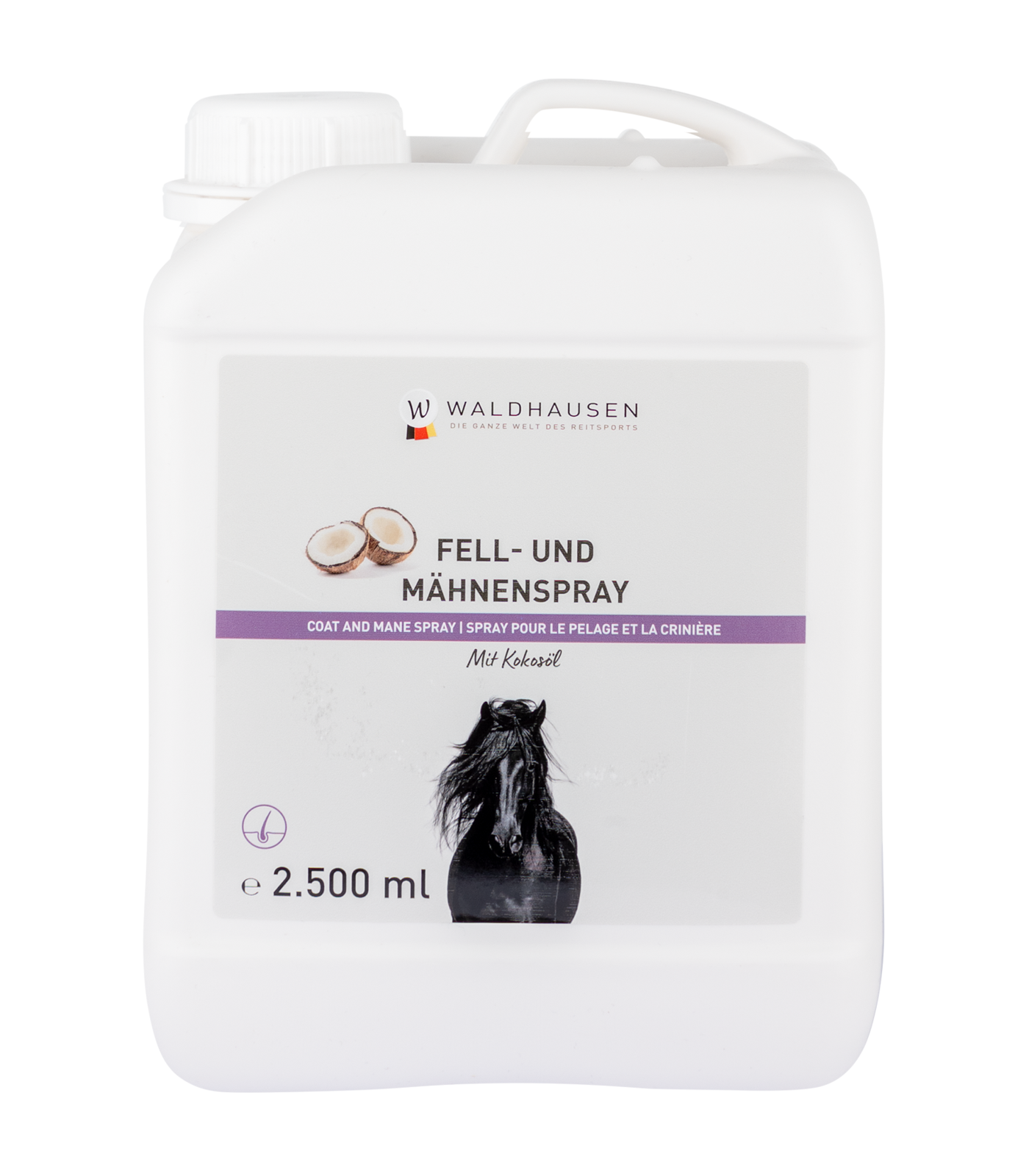 Îngrijire perfectă pentru blană, coamă și coadă! Waldhausen Spray pentru coamă și blană cu cocos, 2500 ml regenerează părul uscat și deteriorat, oferindu-i o strălucire naturală și proaspătă. Previne uscarea părului și facilitează pieptănatul. Cu un parfum proaspăt de cocos.
