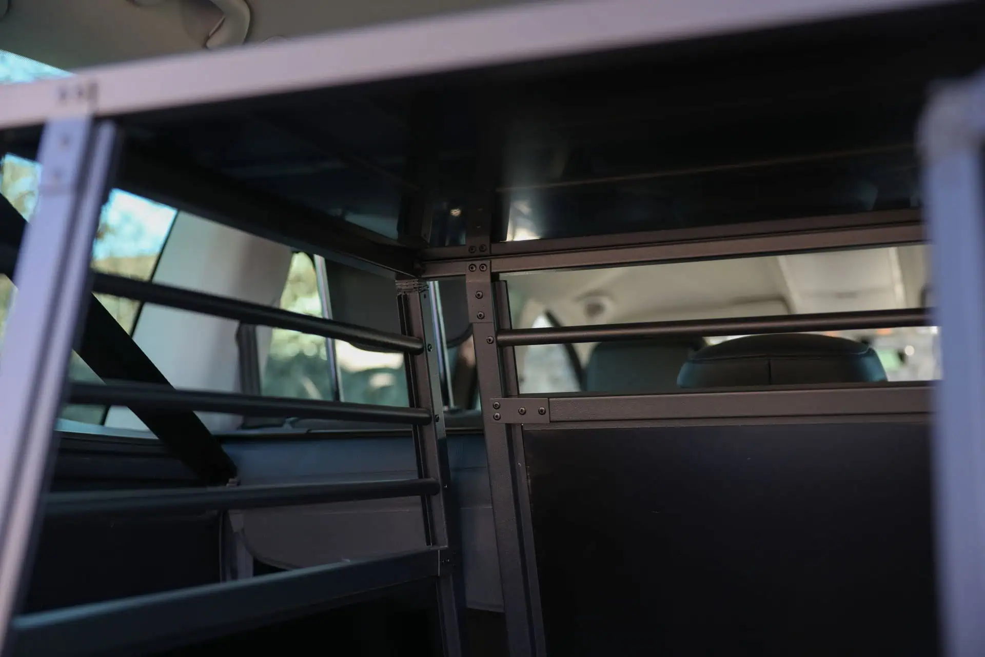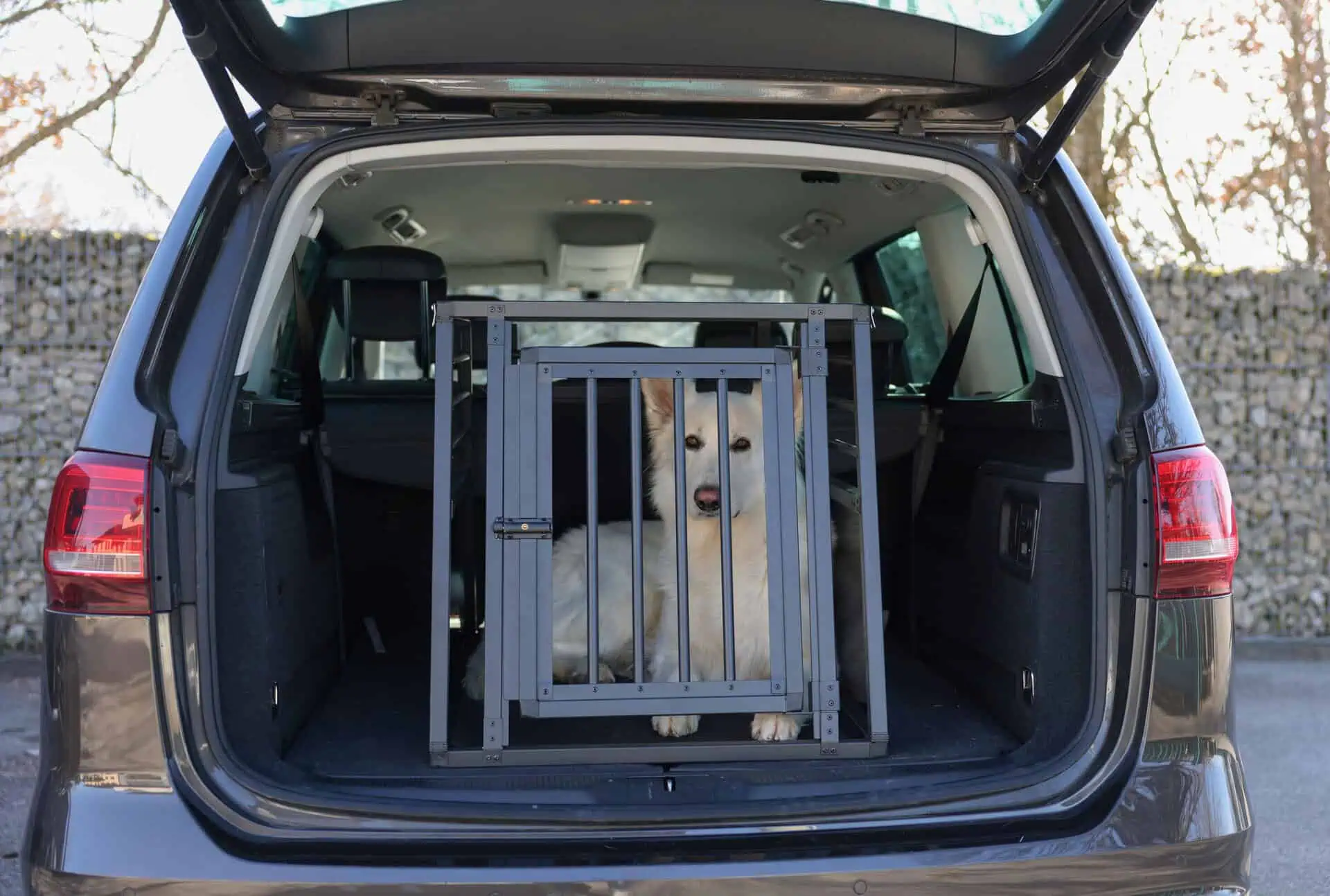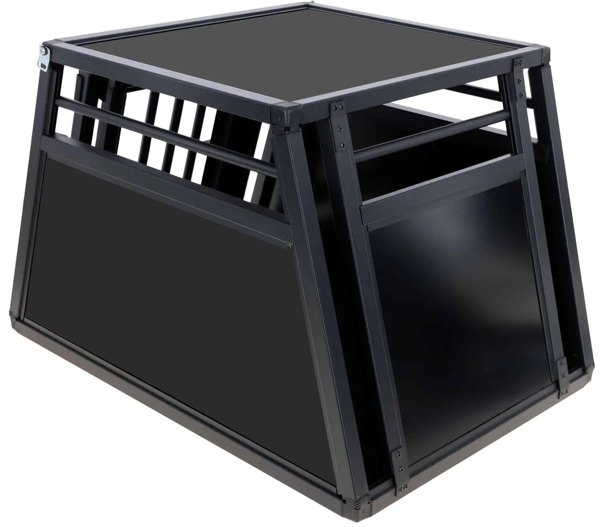 The Aluminium Transport Box Vacation provides a stable and secure transport option for your four-legged friend in the car. Specially designed for the trunk, it ensures a consistently safe and simple transport of your pet. The transport box is made of walls and a roof from high-quality aluminum-plastic composite material, which not only ensures robustness but also keeps the weight low. With its trapezoidal front and back sides, it fits perfectly into the shape of the trunk.