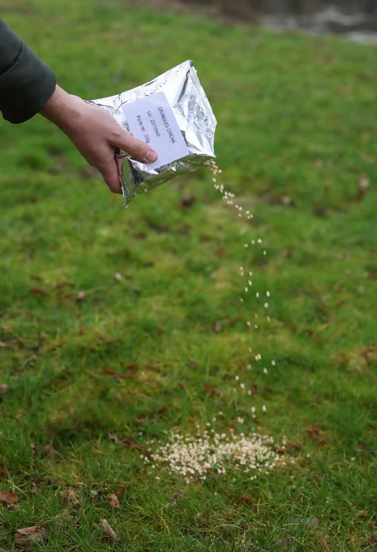 Formați mici grămezi de granulat la o distanță de un metru între ele pe suprafețele ce trebuie protejate (gazon, jardiniere, grădini de legume). Repetați aplicarea după o perioadă de vreme nefavorabilă, dar nu mai mult de o dată pe săptămână. Granulatul acționează imediat după aplicare.