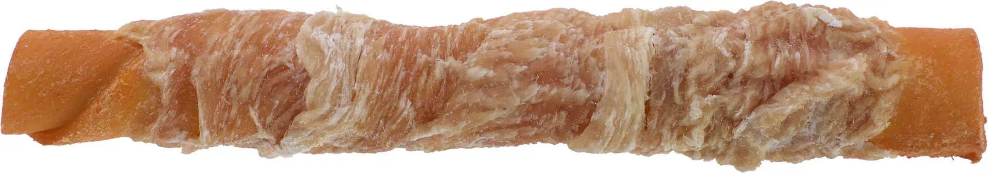 Kerbl Pet Rola din Piele de Vită este fabricată din piele de vită de înaltă calitate și respectă reglementările privind etichetarea în vigoare. Umplutura din pastă de cartofi dulci și învelișul din carne de pui oferă experiențe gustative suplimentare și furnizează nutrienți valoroși. Prin afumarea blândă, se păstrează aroma completă, care face din rola din piele de vită o gustare irezistibilă.