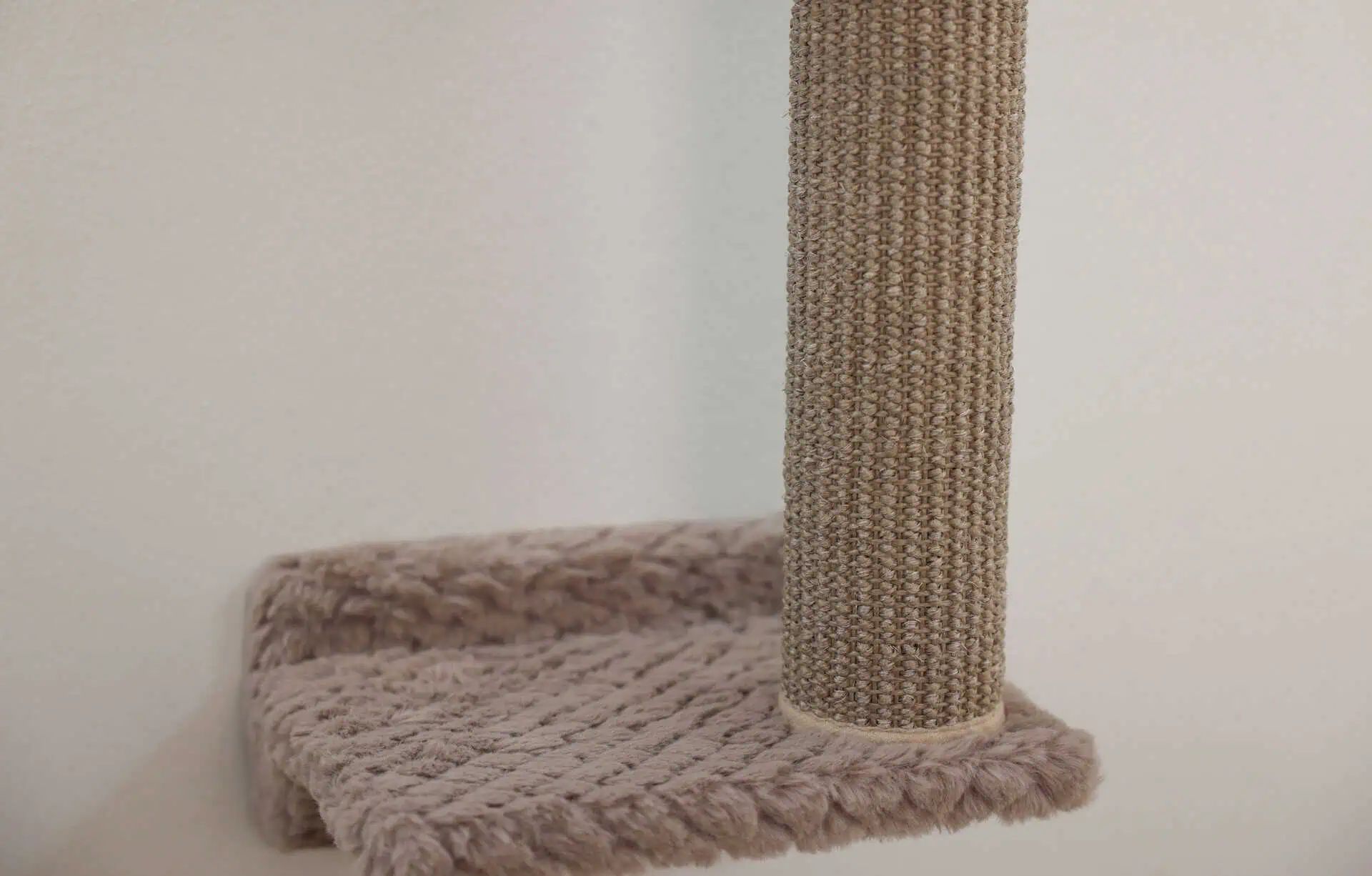 Piesa centrală a peretelui de cățărat Monte Alpi este patul confortabil, cu dimensiunile de 45 x 35 cm, în care pisica dumneavoastră se poate relaxa după joacă. Construcția include doi stâlpi stabili (Ø 8,5 cm x 40 cm) și trei scânduri (26 x 19 cm și 23 x 15,5 cm), care oferă diverse oportunități de cățărat și sărit. Trebuie menționate în mod special cele două stâlpi rezistenți la zgârieturi (Ø 8,5 cm x 26 cm), acoperiți cu sisal, care ajută la ascuțirea ghearelor. Toate celelalte piese sunt acoperite cu plus moale din 100% poliester, oferind pisicii dumneavoastră o suprafață deosebit de plăcută pentru joacă și cățărat.