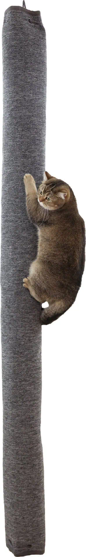 The Climbing Bag Carpet not only provides an ideal climbing spot for your cat, but also serves as a scratching surface for claw care, protecting your furniture and carpets from unwanted scratching attacks. Made from durable polyester carpet fabric and filled with padded cushions, the Climbing Bag is particularly long-lasting and resilient. Thanks to the variable fastening rope, the length can be individually adjusted, allowing the bag to be attached to ceilings, stairwells, or galleries. The Climbing Bag can also serve as a playful climbing aid for your cat to reach higher levels, e.g., in the stairwell or as an extension of existing climbing walls.
