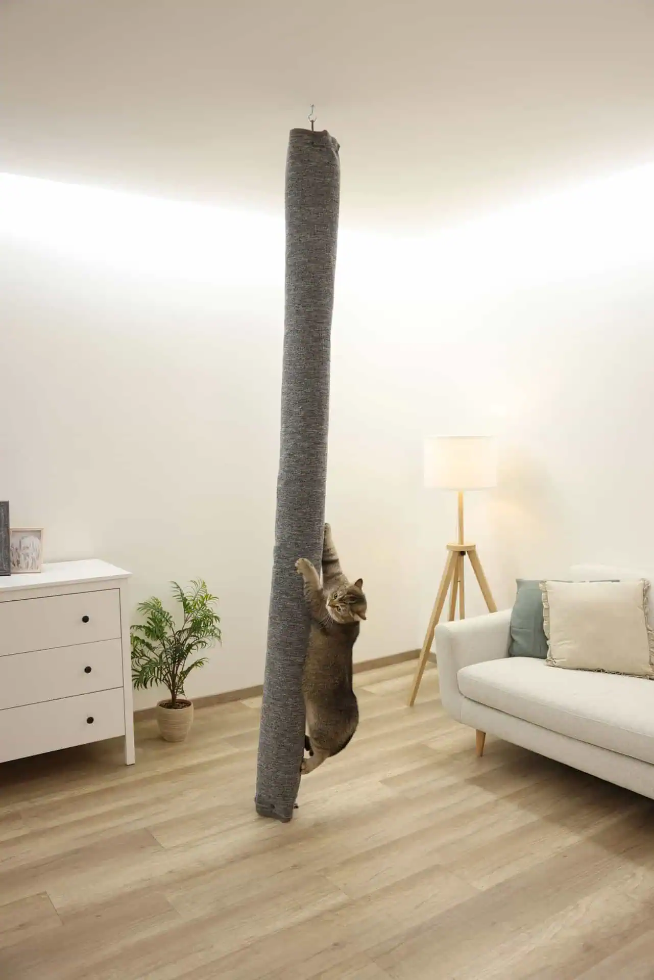 With a height of 240 cm and the color gray, the Climbing Bag Carpet harmoniously fits into any living environment. The easy hanging and unhanging with hooks make mounting a breeze. The included mounting hardware ensures a secure and stable attachment to the ceiling.