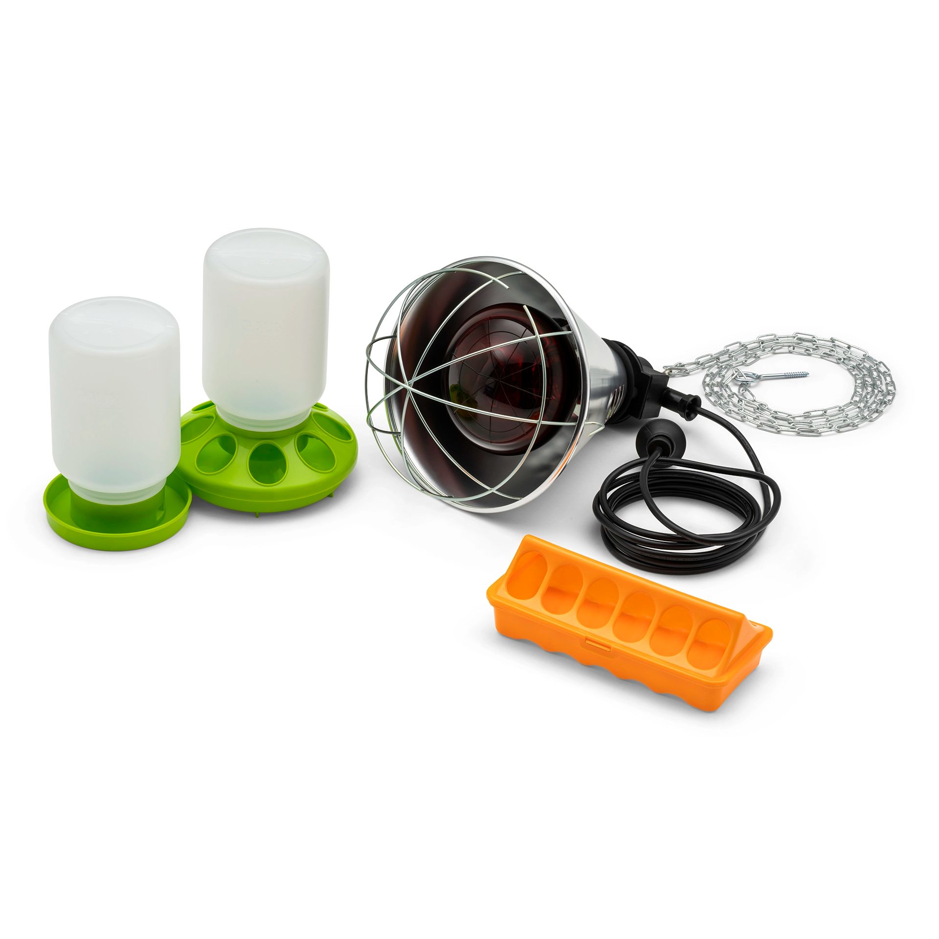 Agrarzone Set Starter pentru Pui este soluția perfectă pentru a le oferi puilor tăi cel mai bun început în viață. Echipat cu un automat de hrană, o adăpătoare pentru pui, un jgheab pentru hrană și un aparat de încălzire cu infraroșu, oferă tot ce ai nevoie pentru o creștere reușită a puilor. Automatul de hrană și jgheabul pentru hrană asigură accesul constant al puilor la hrană proaspătă, în timp ce adăpătoria pentru pui le garantează o aprovizionare constantă cu apă. Aparatul de încălzire cu infraroșu menține puii calzi, stimulează creșterea lor și creează un mediu confortabil.