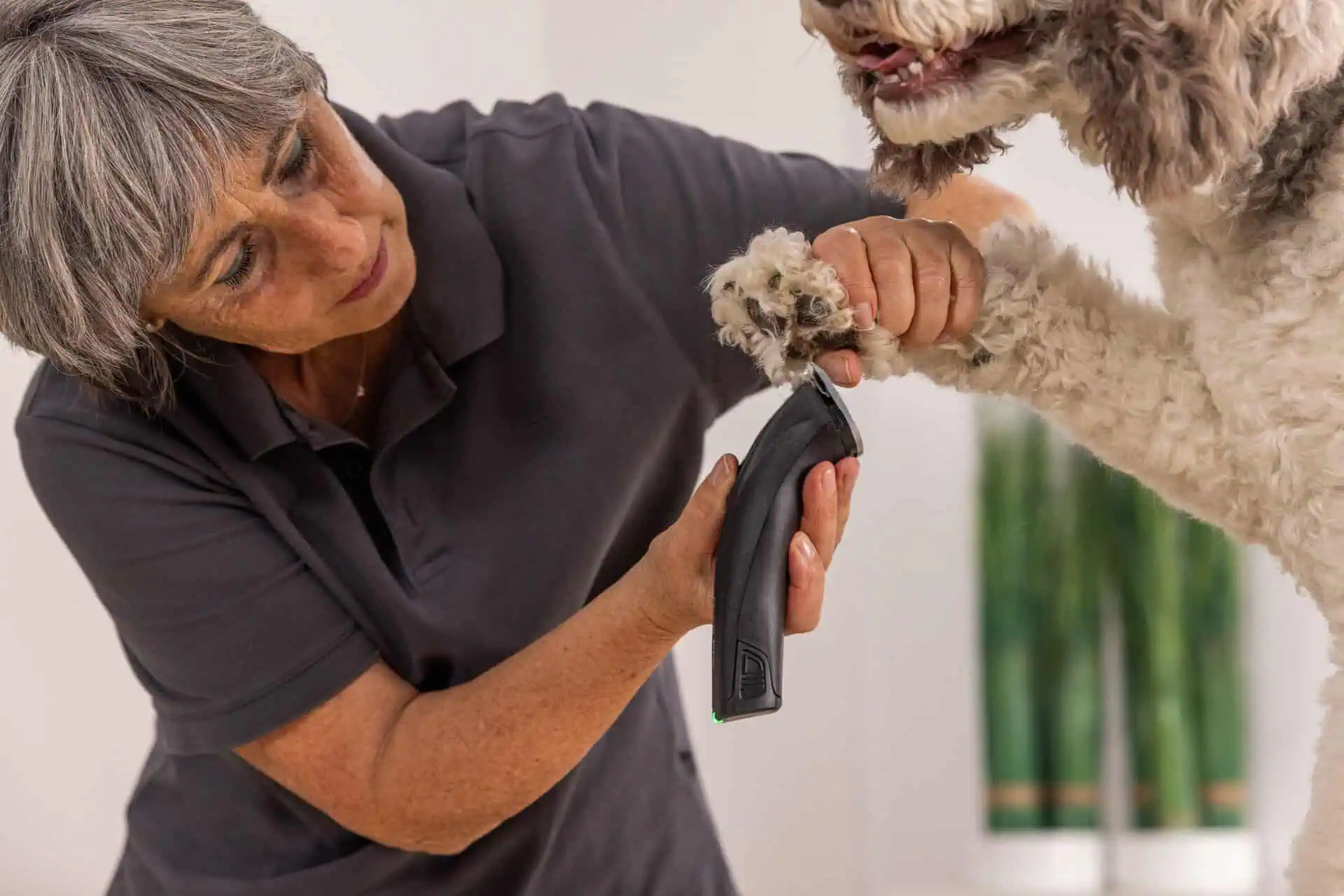 - Flexible pet hair trimmer with interchangeable battery