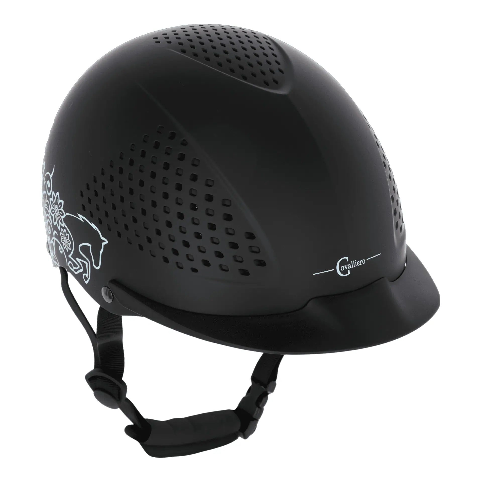 Covalliero Cască de călărie copii Beauty 2.0 este combinația perfectă între siguranță și un design modern. Cu modelul său floral, această cască aduce un suflu proaspăt în stilul tău ecvestru. Nu doar că îndeplinește cele mai înalte standarde de siguranță, dar îți permite și să îți exprimi personalitatea. Sistemul Disc îți oferă posibilitatea de a regla cu ușurință și în mod continuu banda de cap după circumferința capului tău – toate acestea cu o singură mână. Carcasa rezistentă la șocuri te protejează în timpul călăriei, în timp ce sistemul inteligent de ventilație asigură un climat plăcut, indiferent dacă ești pe manej sau în teren. Cu forma sa elegantă și sistemul de prindere în 4 puncte, casca de călărie pentru copii se potrivește perfect și confortabil. Testată conform celor mai recente standarde (EN1384:2023), te poți baza pe faptul că ești protejat în orice situație. Casca este ideală pentru tinerii călăreți care apreciază siguranța și stilul și caută ceva special. Indiferent dacă ești activ în sportul ecvestru sau pur și simplu îți place să călărești în timpul liber, această cască este un must-have pentru orice tânăr pasionat de călărie.