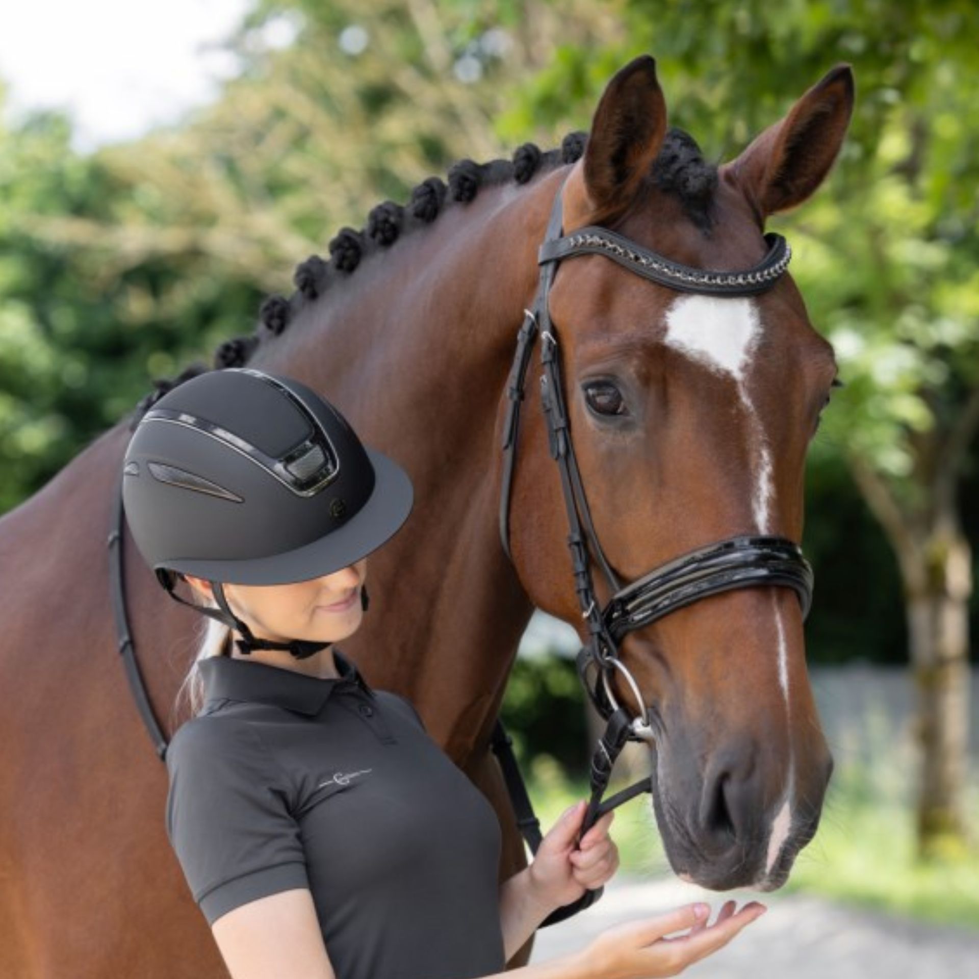 Casca de echitație Elite Polo nu este doar o protecție pentru capul tău, ci și o declarație de stil și confort. Cu viziera modernă tip polo și o fabricație atentă, această cască îți oferă combinația perfectă între funcționalitate și un design atrăgător. Carcasa exterioară extrem de rezistentă din ABS asigură o protecție de primă clasă, în timp ce piele ecologică moale și de înaltă calitate a curelelor de fixare ridică confortul la un nou nivel. Datorită sistemului Disc, poți regla cureaua de cap într-un mod continuu, cu o singură mână, în funcție de circumferința capului tău. Sistemul excelent de ventilație garantează un climat optim sub cască, chiar și în zilele călduroase. Și dacă ai nevoie de o curățare temeinică, poți scoate cu ușurință căptușeala interioară moale și căptușită. Sistemul de prindere în 4 puncte asigură, de asemenea, o fixare sigură, astfel încât să te poți concentra pe experiența ta ecvestră. Casca de echitație Elite Polo este ideală pentru călăreții pasionați care apreciază siguranța și stilul. Indiferent dacă este vorba de antrenament sau de competiție, această cască nu te va dezamăgi.