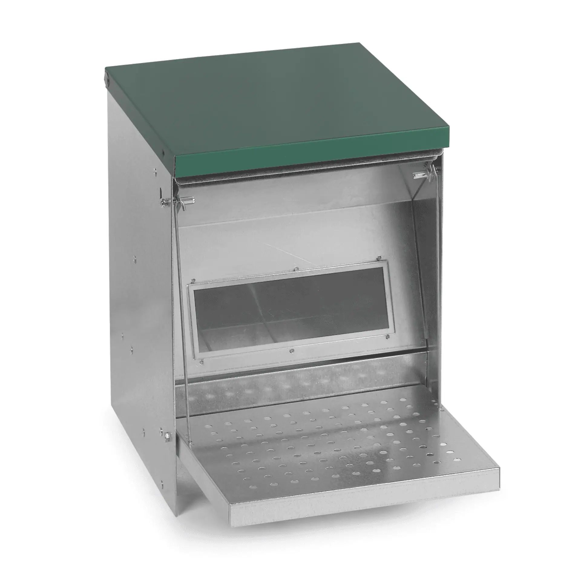 Cu Agrarzone Automat hrănire Păsări cu Clapă Anti-acces, hrana este oferită păsărilor tale în siguranță și igienic. Automatul funcționează astfel încât hrana este accesibilă doar atunci când găinile sau rațele tale calcă pe clapeta. Astfel, hrana este protejată de șobolani, șoareci și alți oaspeți nepoftiți, reducând semnificativ riscul de îmbolnăvire. Acest automat pentru hrană este nu doar robust și ușor de curățat, ci și rezistent la stropire, astfel încât păsările tale au mereu acces la hrană uscată. Cu diverse capacități de 5 kg, 10 kg, 20 kg sau 40 kg, ai întotdeauna soluția potrivită la îndemână. Construcția specială a automatului pentru hrană minimizează risipa de hrană, deoarece forma specială și reglarea pe înălțime asigură că hrana cade afară doar atunci când este cu adevărat necesară. În plus, automatul pentru hrană împiedică contactul direct cu dăunătorii, deoarece aceștia nu pot pătrunde în dispozitiv. Fabricat din metal zincat și plastic de înaltă calitate, automatul pentru hrană oferă nu doar o durată lungă de viață, ci își păstrează și culoarea datorită suprafeței rezistente la razele UV. Automatul pentru hrană este deosebit de potrivit pentru iubitorii de animale care pun preț pe o hrănire igienică și în același timp doresc să protejeze hrana animalelor lor de vizitatorii nepoftiți. Utilizarea simplă, mecanismul ușor de curățat și posibilitatea de a regla greutatea pentru acces individual fac din acest automat pentru hrană un însoțitor indispensabil pentru fiecare crescător de păsări.