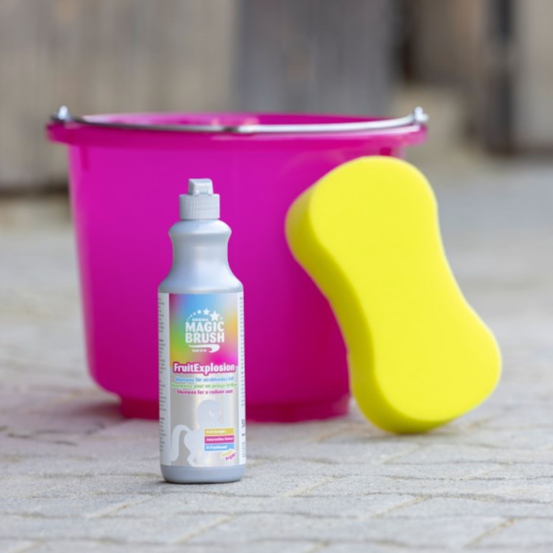 MagicBrush Şampon FruitExplosion, 500 ml, oferă o curățare delicată și hrănitoare, revitalizând părul și blana calului, oferindu-le strălucire și suplețe. Formula sa blândă este ideală chiar și pentru pielea sensibilă.