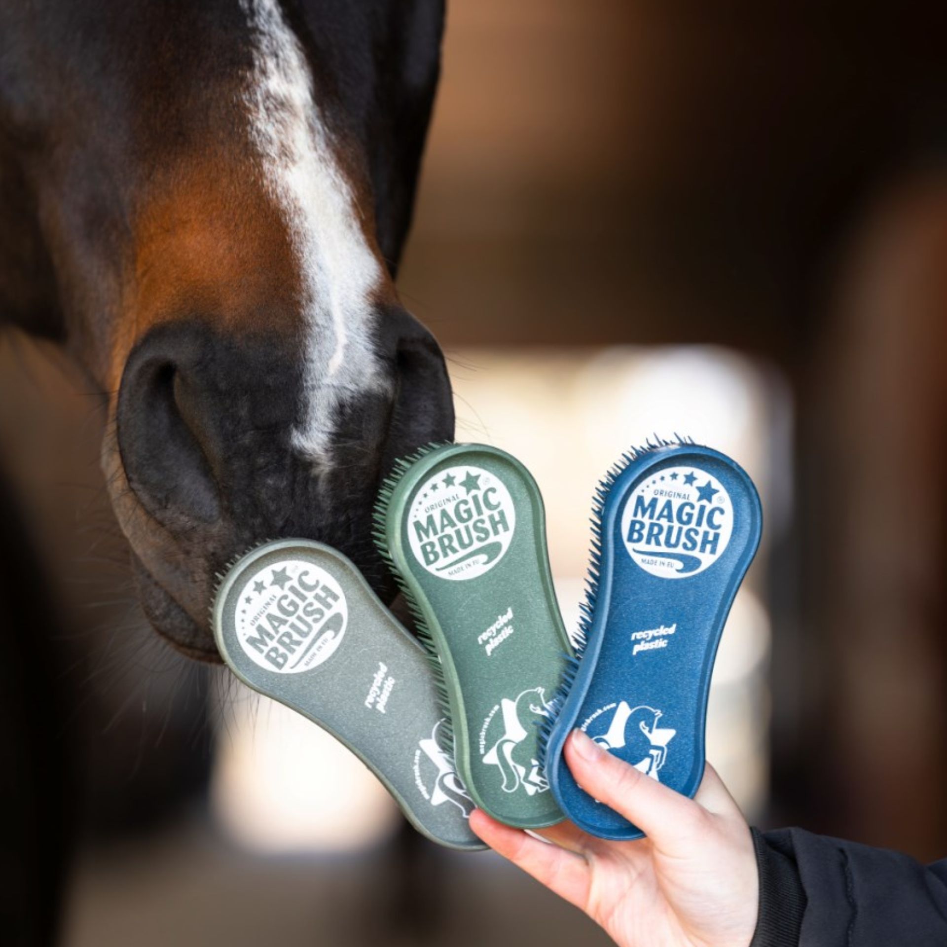 MagicBrush vă oferă produse de îngrijire colorate și eficiente pentru cai și câini care asigură o curățenie radiantă și o blană strălucitoare. Seturile de îngrijire a cailor MagicBrush curăță bine, masează ușor și îngrijește blana cu ingrediente 100% naturale. Sunt ideale pentru îngrijire și versatile. Pentru câini, peria pentru câini MagicBrush oferă o curățare eficientă, un masaj blând și o îngrijire ușoară. Cu MagicBrush alegi calitatea, bucuria și eficacitatea. Descoperiți produsele MagicBrush de la Agrarzone și aduceți strălucire și bună dispoziție grajdului și casei dvs.