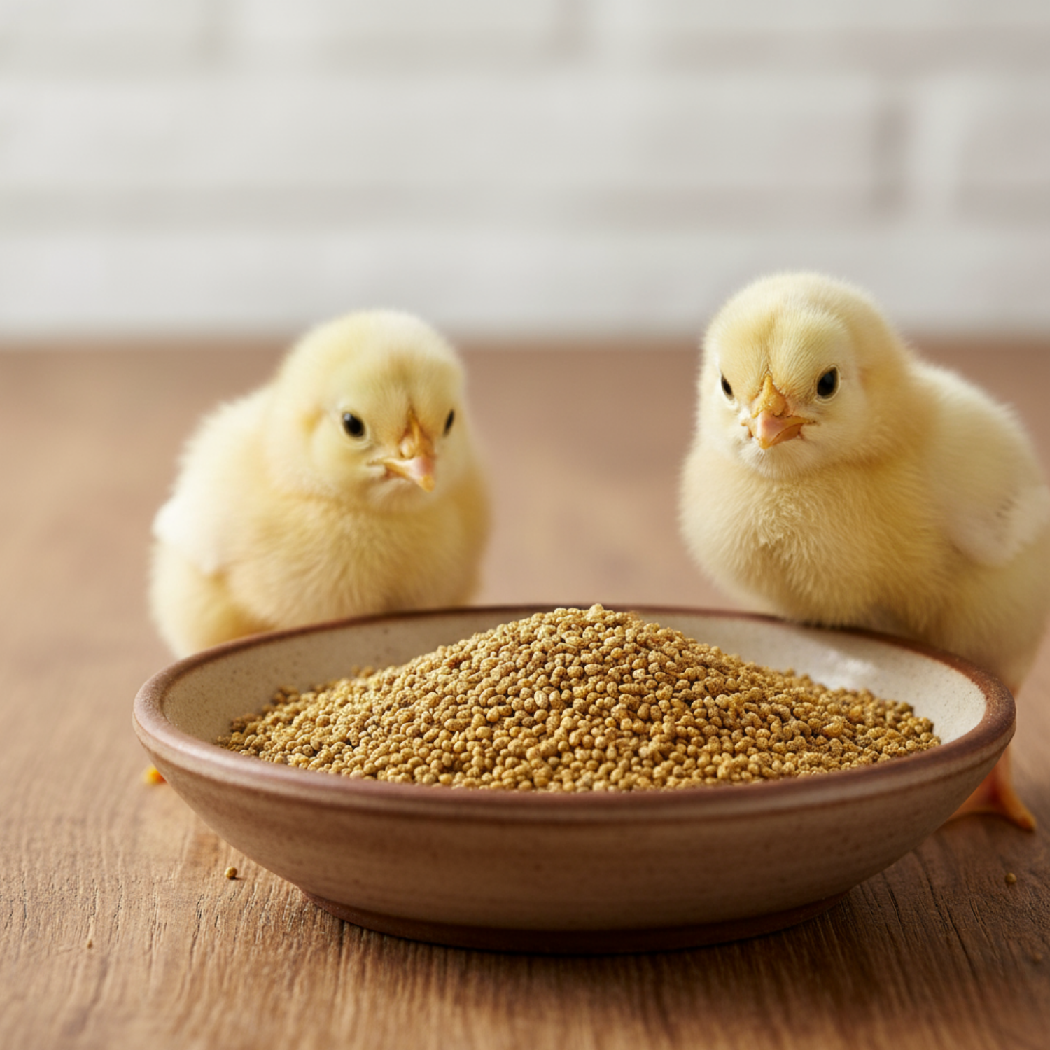 Our finely granulated feed is specially tailored to the small beaks of chicks and minimizes feed loss. The granules ensure optimal nutrient absorption and easy handling.