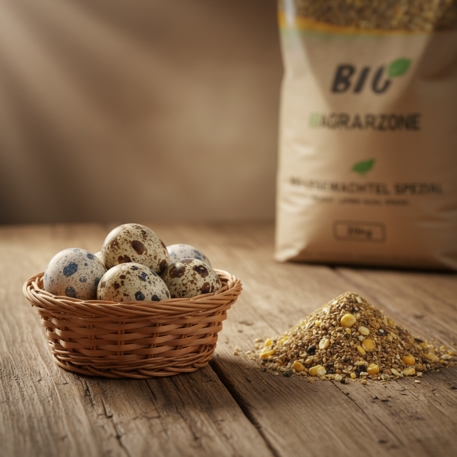 Give your laying quail only the best – with our Organic Laying Quail Special Feed. Our carefully developed recipe with selected organic ingredients provides optimal care for your animals, promotes a strong immune system, and ensures tasty eggs all year round. This quail feed is an investment in the well-being of your quail that pays off in every way.The basis of this feed is a selection of organically grown ingredients sourced from local organic farmers. This cooperation, which has grown over generations, not only ensures the outstanding quality of every grain but also the attention to detail and incomparable freshness that you receive with every bag.