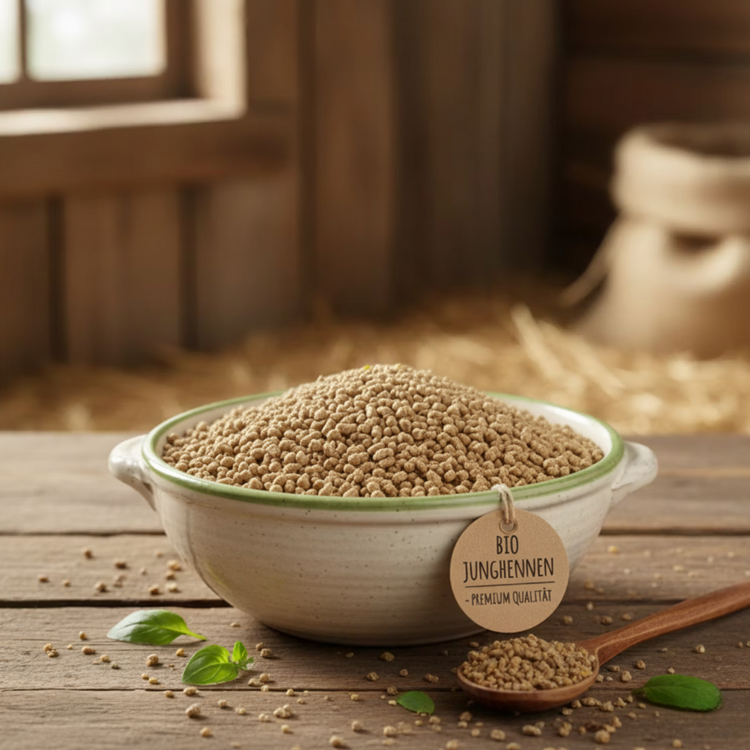 The feed comes in a practical, granulated form. This effectively prevents the pullets from sorting out individual components – as they would with grain mixes. Each granule contains the complete nutrient density of the recipe, ensuring that your animals absorb all important building blocks evenly and without loss. Additionally, our feed is processed to be low-dust, which offers two advantages: It minimizes feed loss and – more importantly – protects the sensitive respiratory tracts of your animals, thus promoting general animal health and ensuring a clean feeding environment.