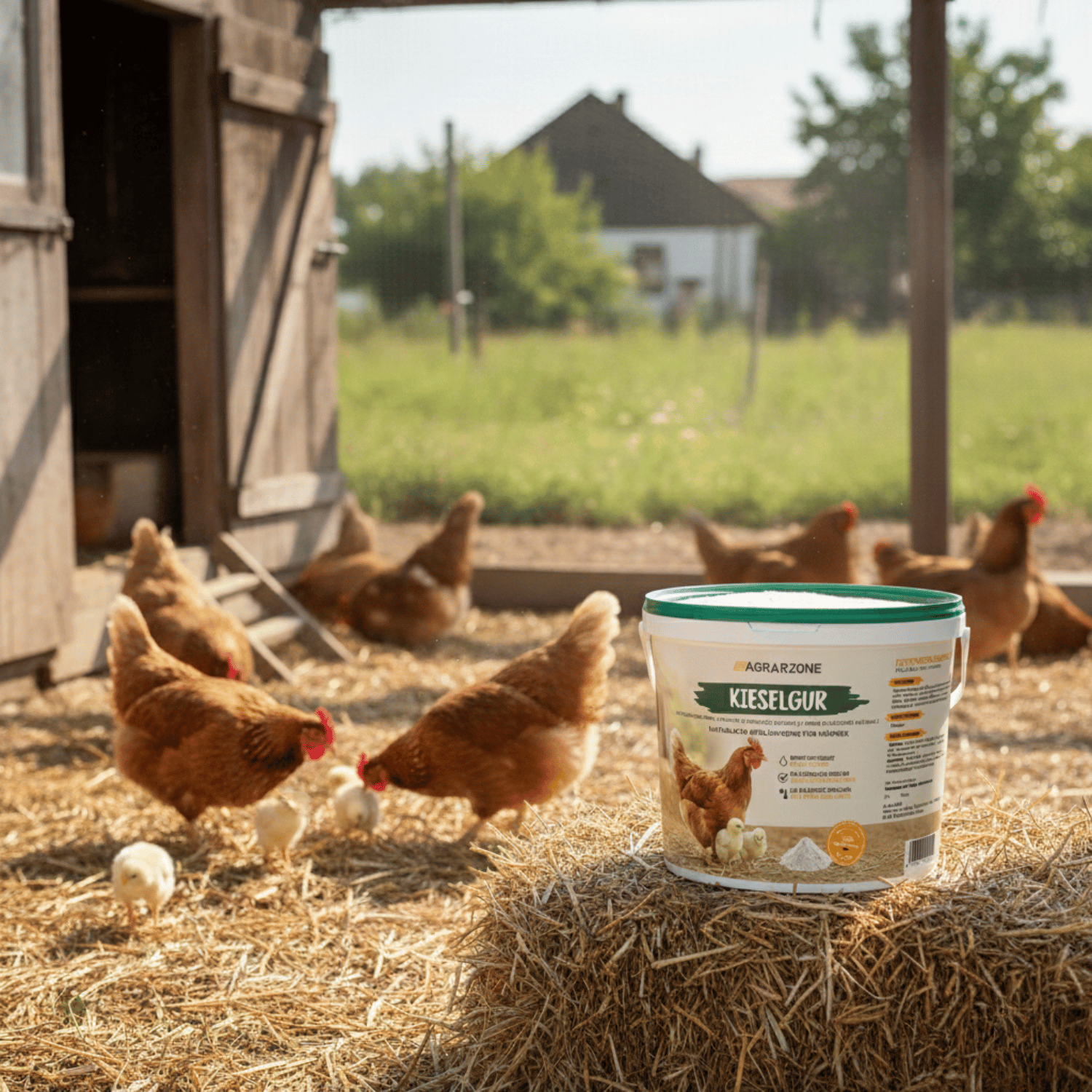 Pământul nostru natural de diatomee este un produs 100% natural, perfect pentru grajd, grădină sau casă. Leagă eficient umezeala și asigură un climat stabil îmbunătățit. Este ideal pentru proprietarii responsabili de animale care se bazează pe un management organic stabil și nu doresc să compromită calitatea ouălor și a cărnii.