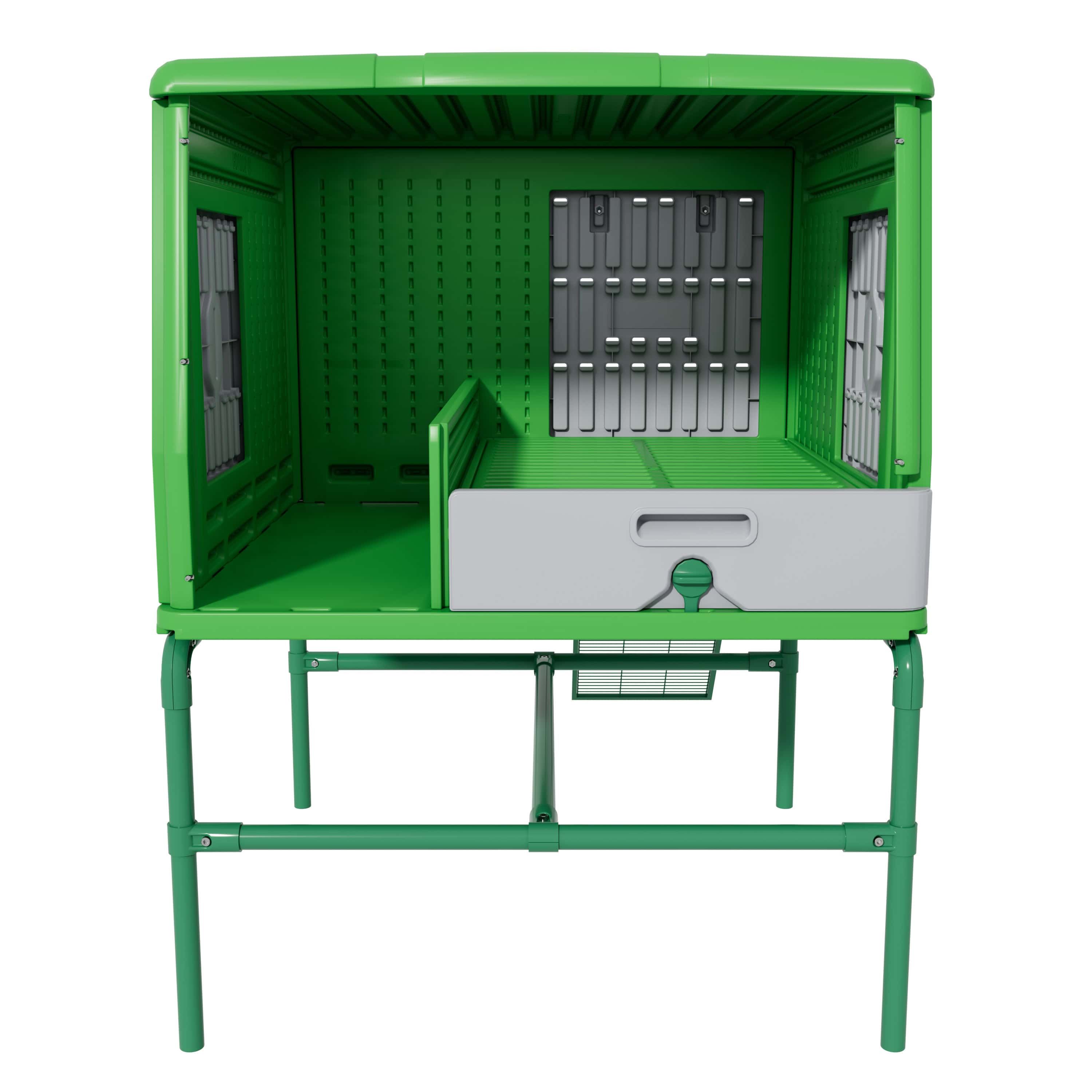Mulți își imaginează încă un coteț de găini ca o simplă baracă din lemn. Cu toate acestea, creșterea modernă a găinilor arată altfel. The Egg Loft este realizat din materiale robuste și sigure pentru sănătate, care nu absorb umezeala, nu putrezesc și – aspect deosebit de important – sunt rezistente la infestarea cu paraziți (cum ar fi căpușa roșie). Datorită suprafețelor netede, acest coteț din plastic este extrem de ușor de întreținut; de obicei, o simplă clătire cu apă este suficientă. Rezultatul: Un mediu curat, uscat și sănătos pe tot parcursul anului.