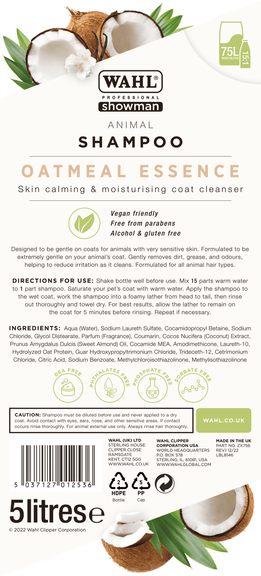 Șamponul Wahl Oatmeal îi oferă animalului tău o curățare deosebit de blândă, bazată pe ingrediente naturale. Datorită formulei delicate cu proteine de ovăz, extract de nucă de cocos și ulei de migdale dulci, blana nu este doar degresată eficient și curățată de pete, ci și îngrijită pe termen lung și eliberată de mirosurile neplăcute. Este alegerea ideală pentru animalele cu piele sensibilă, deoarece nu conține deloc alcool sau tensioactivi dăunători.