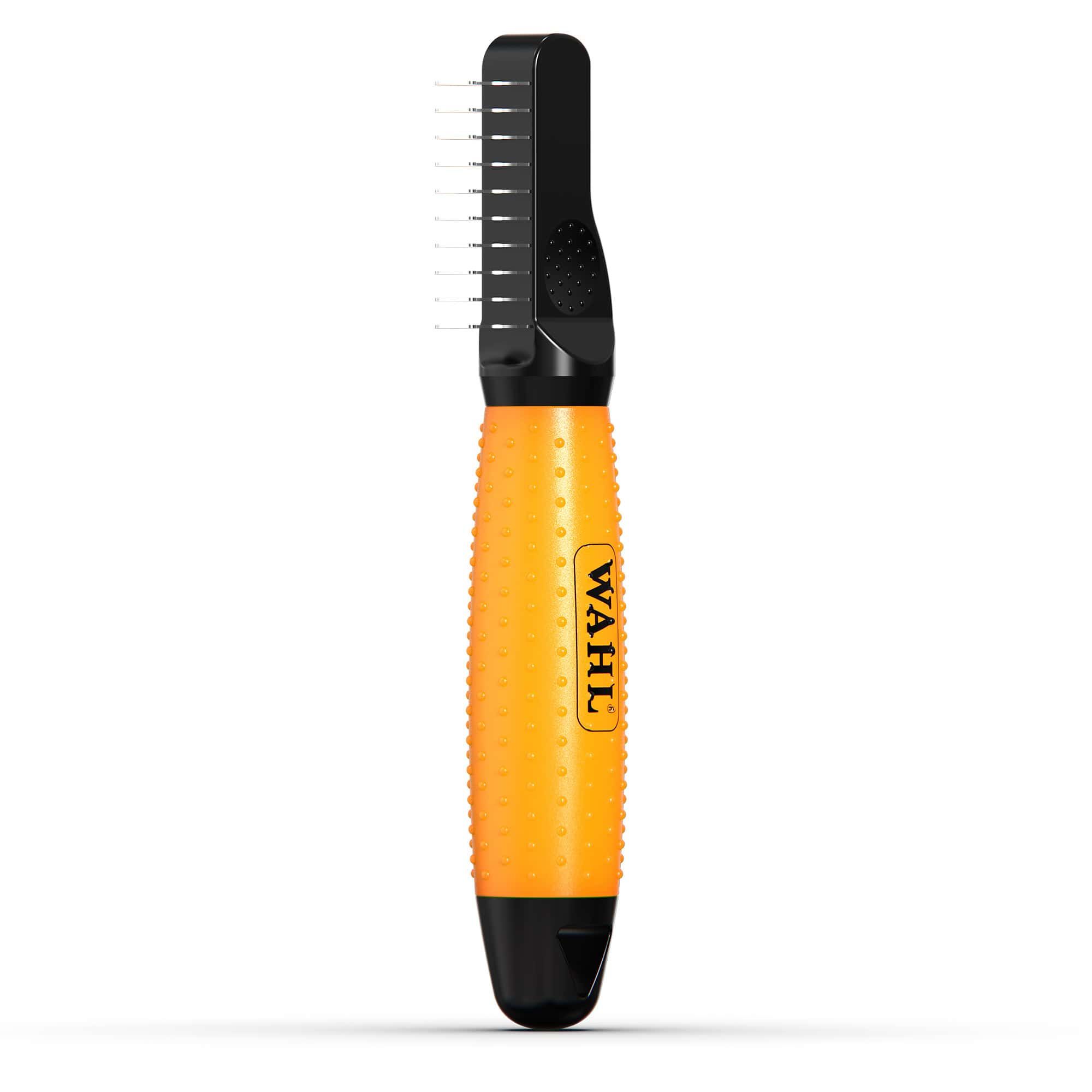 Știi și tu cum e: blana deasă sau lungă are tendința de a se încâlci rapid, formând noduri cărora periile obișnuite abia le fac față. Cu ajutorul dispozitivului Wahl Descalcitor, vei reuși să îndepărtezi cu blândețe chiar și cele mai încăpățânate noduri și stratul de puf, fără a irita pielea animalului tău și fără a-i provoca durere.