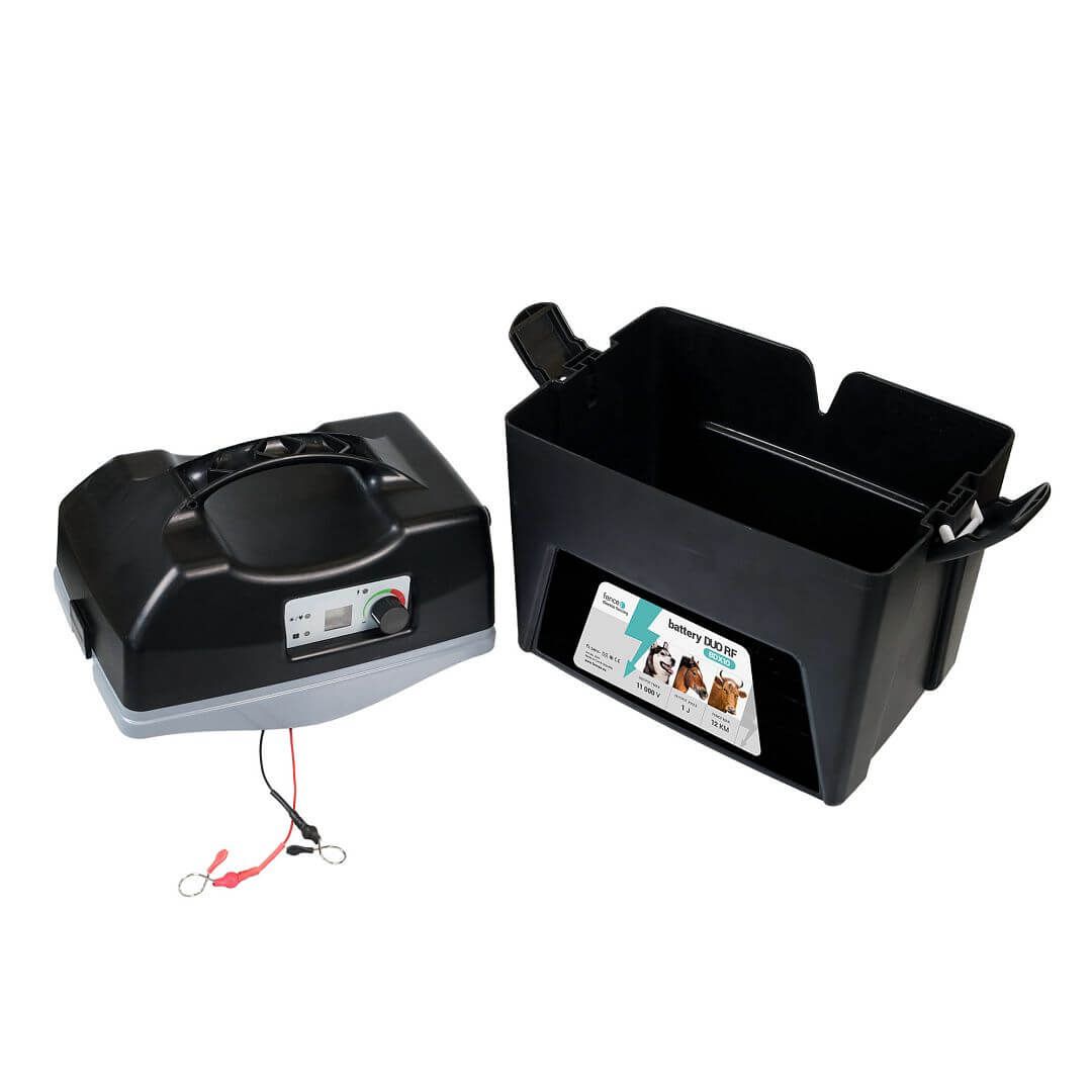 Compact, totul inclus: fencee battery DUO BD50 este un aparat de gard electric 9 V / 12 V extrem de practic, în construcție tip cutie. Particularitatea: Bateria (nu este inclusă în livrare) se depozitează direct în carcasă. Asta face aparatul extrem de portabil și protejează bateria de intemperii. Este ideal pentru trasee de paddock, pășuni porționate, turnee sau drumeții călare.