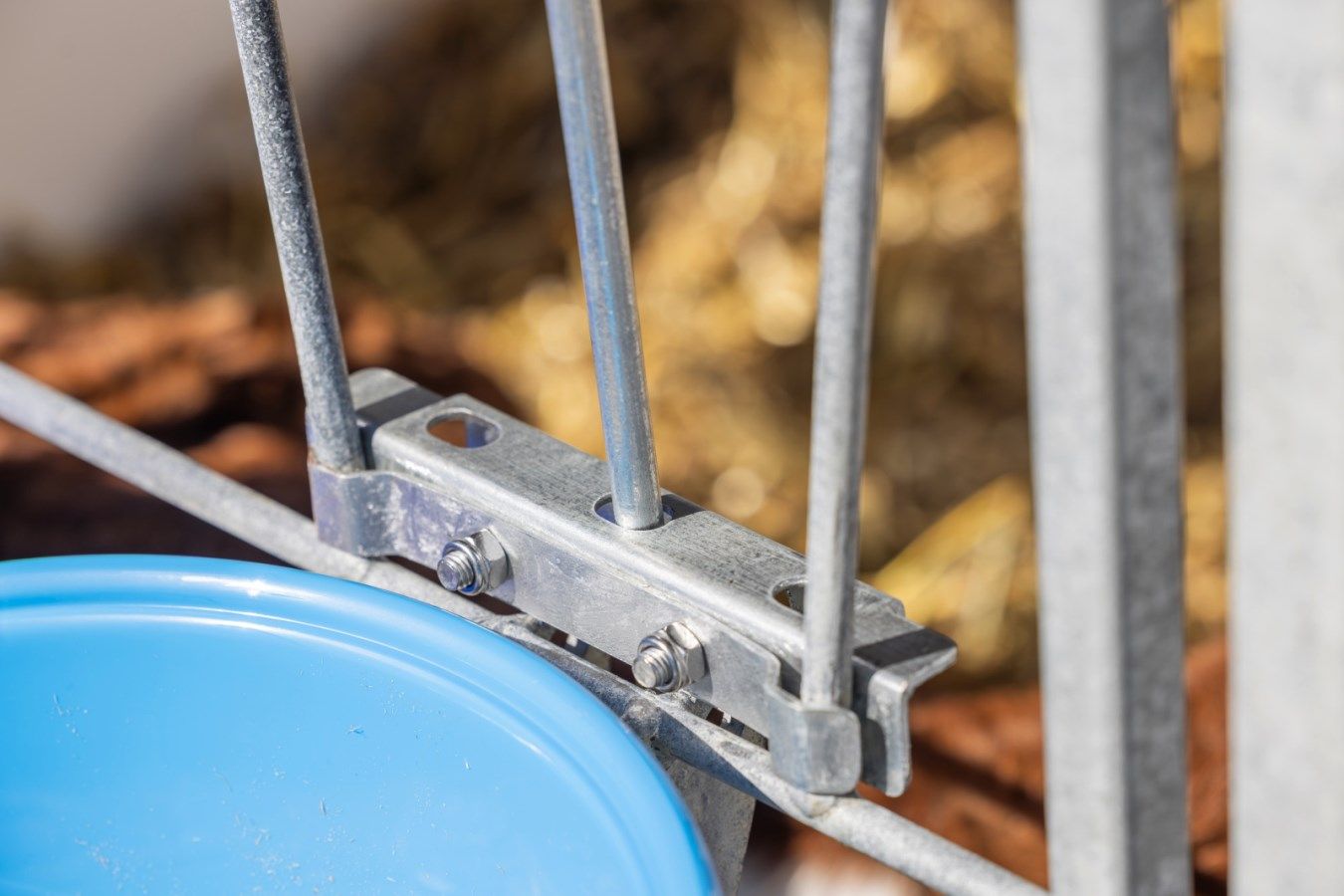 Fabricată din metal galvanizat robust, bariera de hrănire pentru boxe viței oferă protecție durabilă împotriva ruginii și o stabilitate ridicată. Este ideală pentru condițiile solicitante din mediul agricol și impresionează prin longevitate. Fiind un set de modernizare simplu, este conceput special pentru adăposturile individuale și se instalează rapid, pentru a putea reacționa flexibil la nevoile fiecărui vițel.