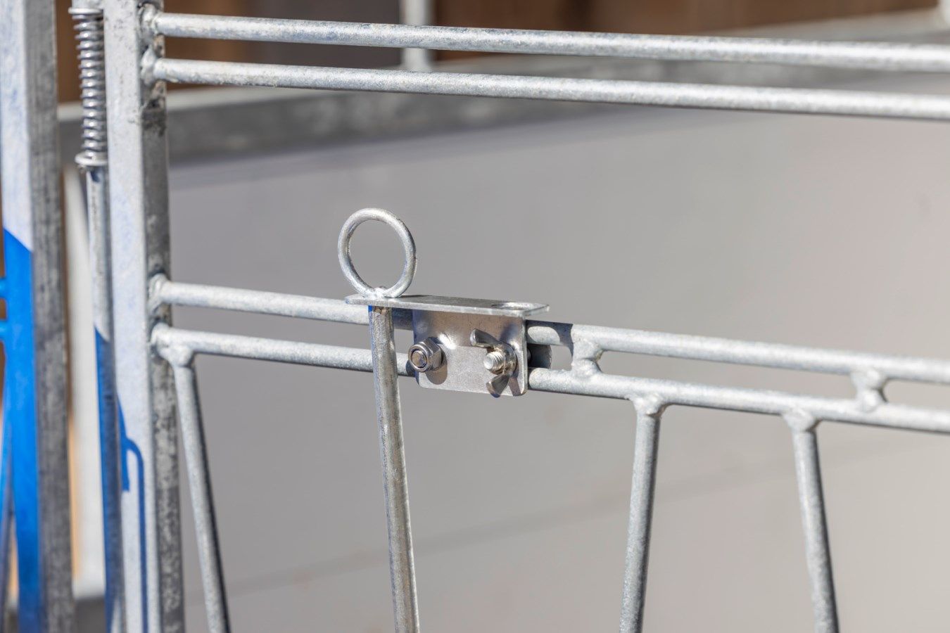 Bariera de hrănire pentru boxe viței este fabricată din metal galvanizat robust, ceea ce asigură o protecție durabilă împotriva ruginii și o stabilitate excelentă.
