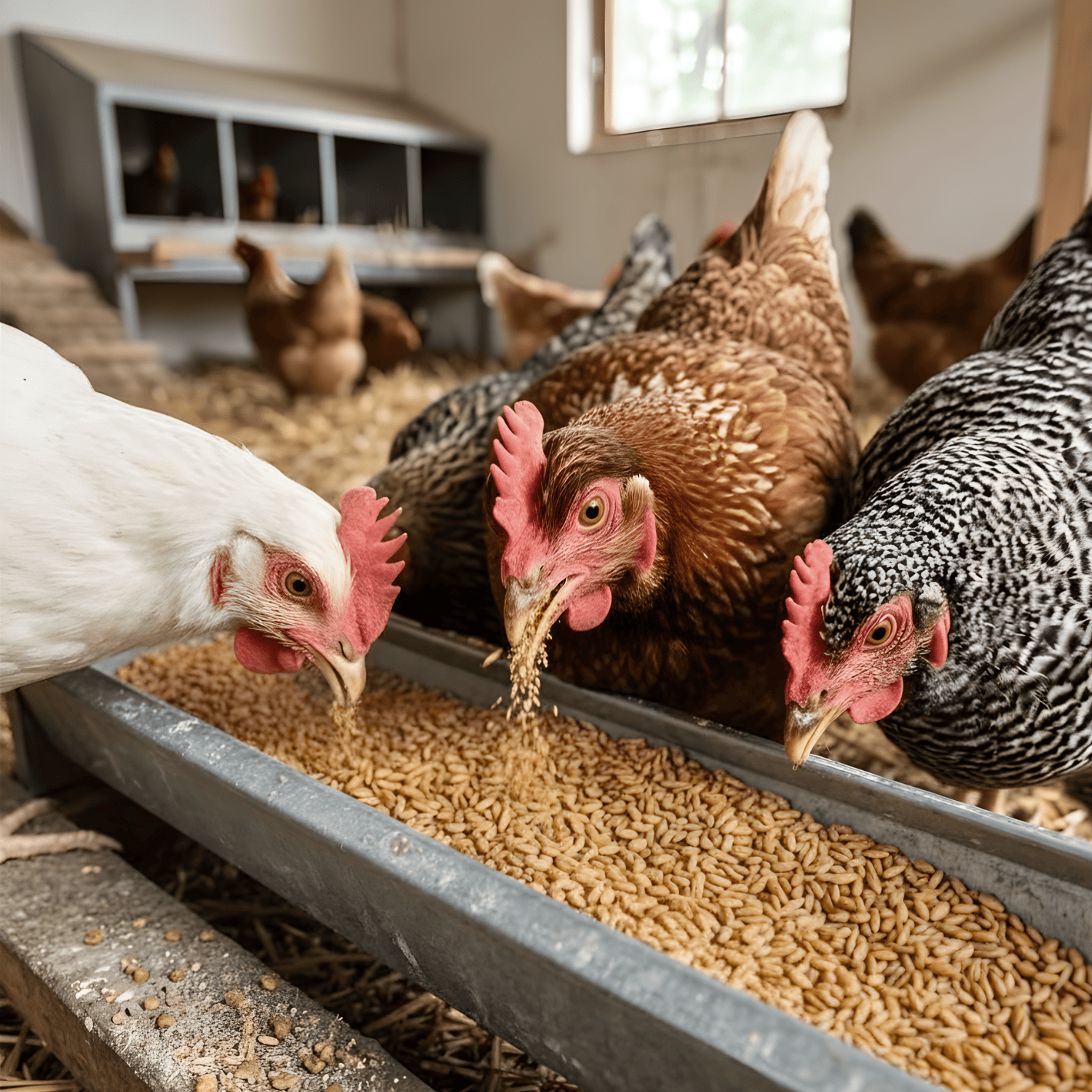 - Încurajează comportamentul natural de ciugulire al găinilor, fiind sub formă de boabe întregi.