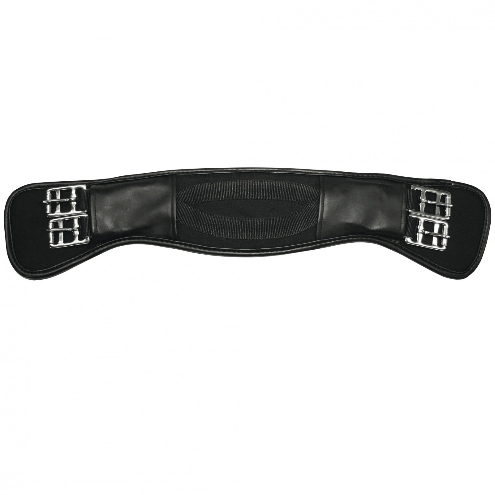Această frumoasă chingă de dresaj cu cauciuc sintetic elastic cu catarame cu role este curbată anatomic pentru o mai mare libertate de mișcare pentru cal.