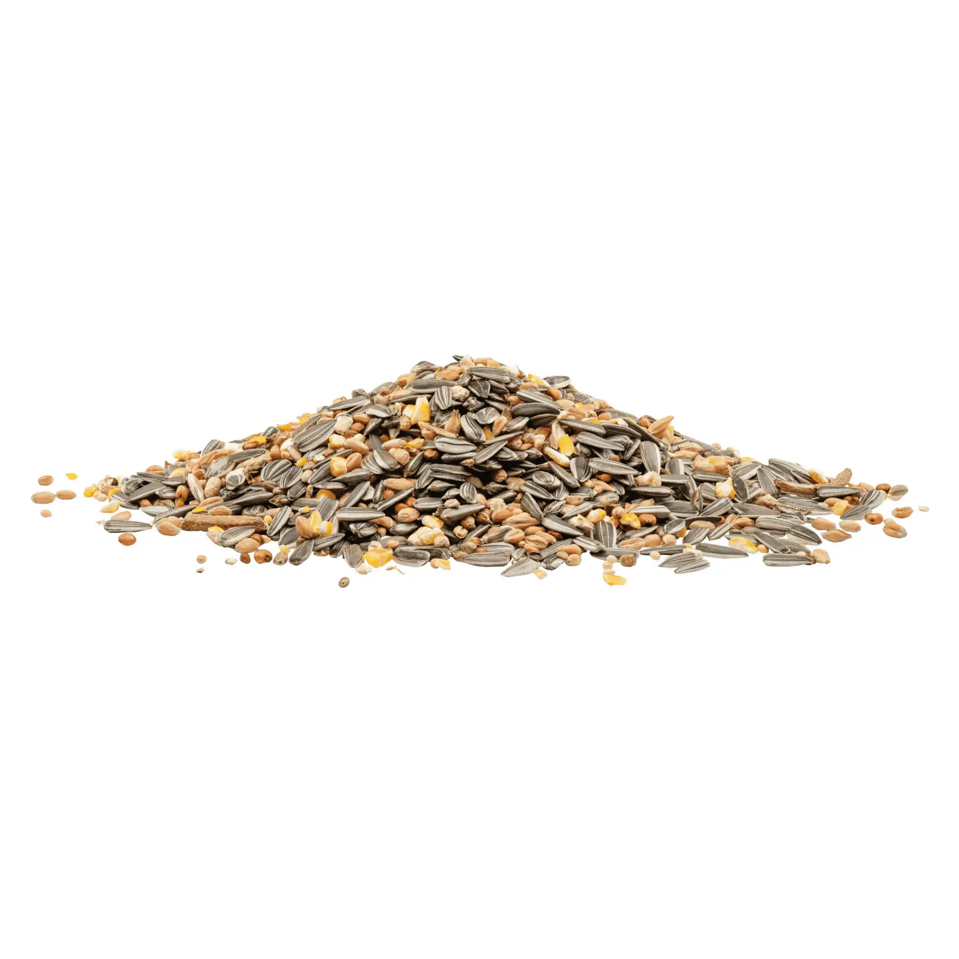 35,00% semințe de floarea-soarelui vărgate , 25,00% grâu, 17,00% porumb grosier, 10,00% boabe de milo, 5,00% mei galben, 5,00% orz de bere, 3,00% cânepă europeană